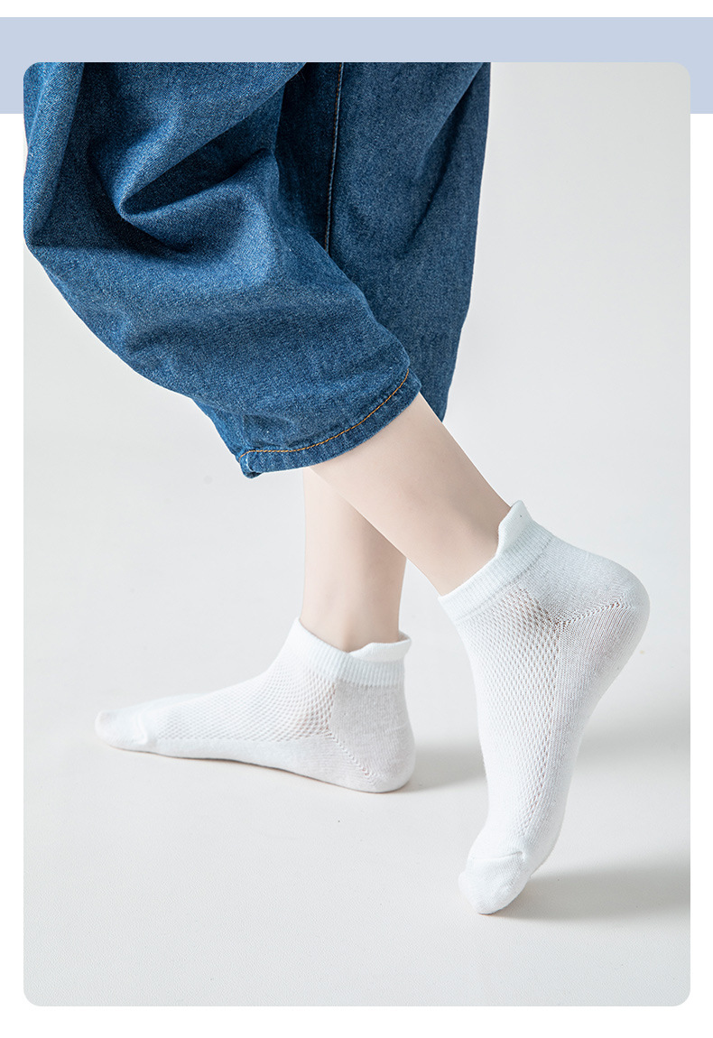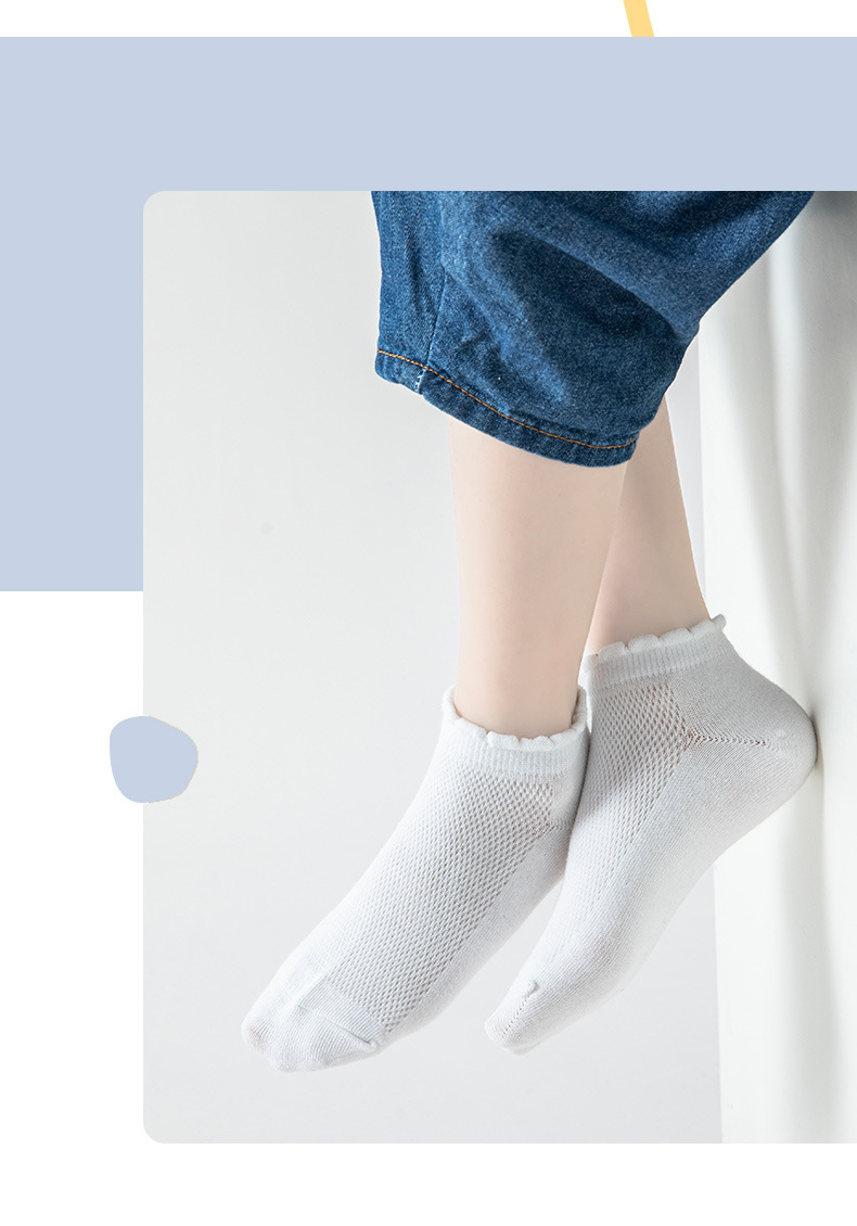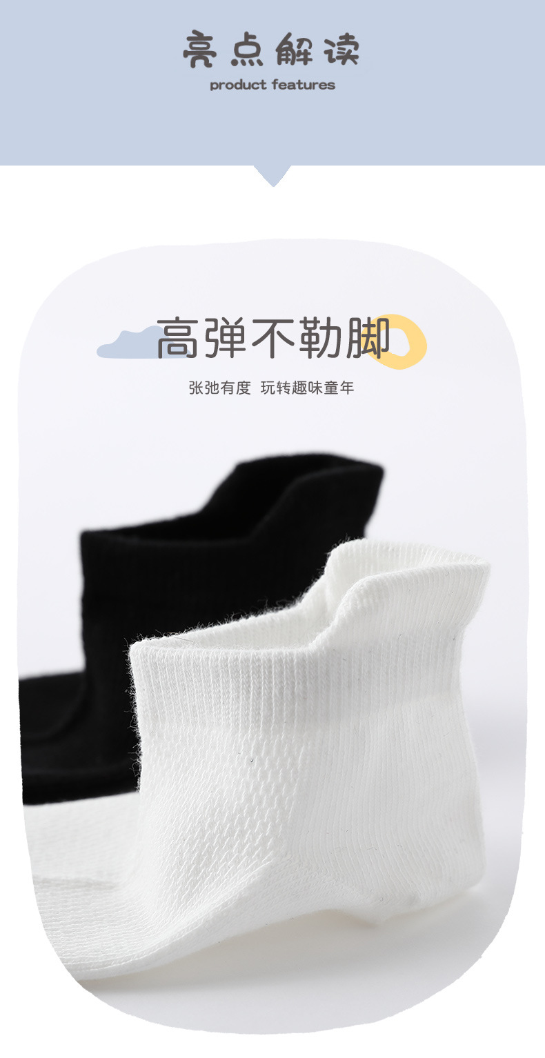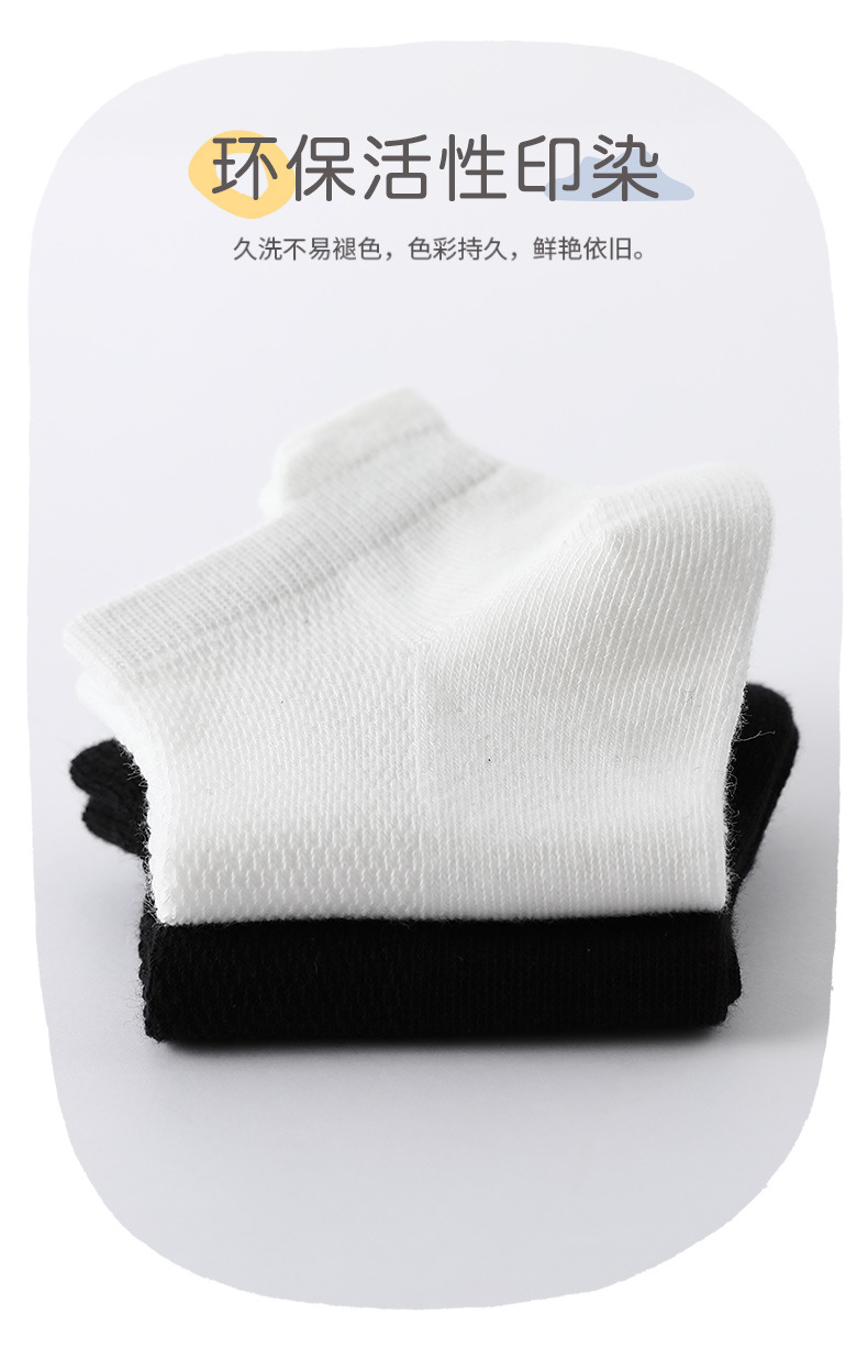 어린이 양말 봄과 여름 남학생과 여학생을위한 얇은 메쉬 양말 중 · 대형 어린이를위한 통기성 단색 발목 양말 흑백 학생 양말