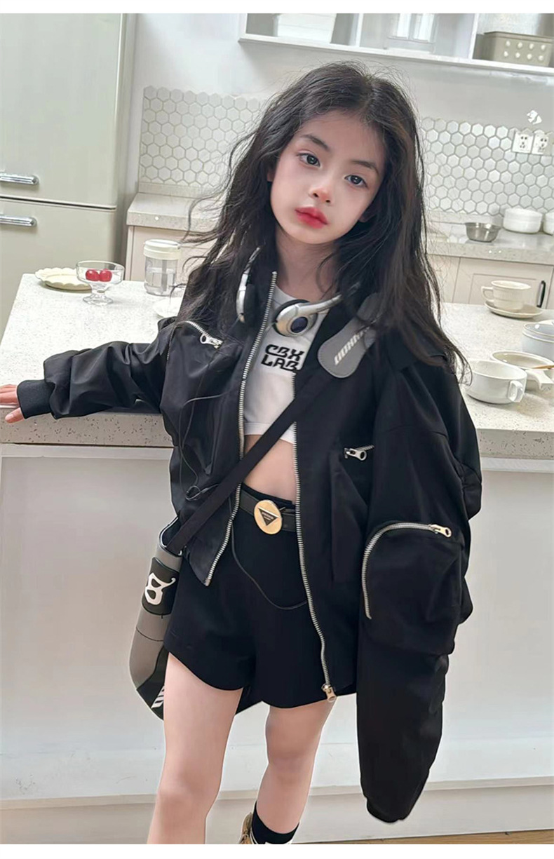 소녀의 봄과 가을 코트 2024 새로운 패션 소녀 한국식 캐주얼 세련된 3 차원 작업 재킷스토어 가기