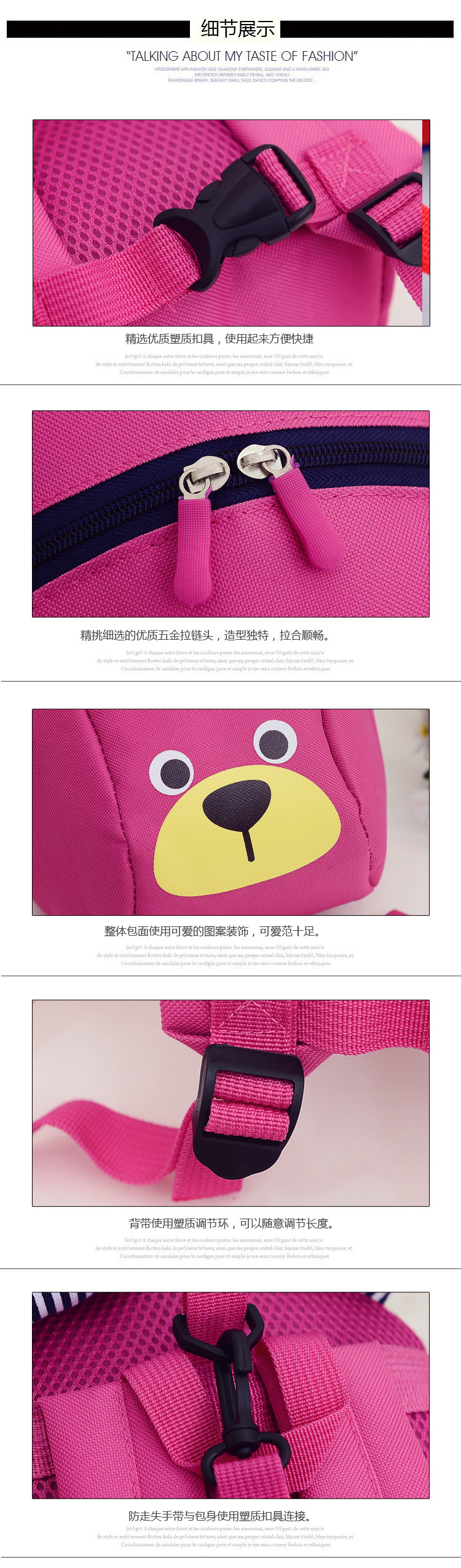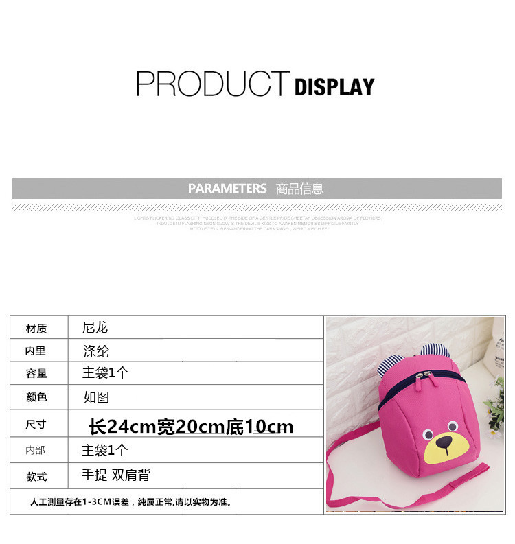 温馨提示防走失小熊双肩包现货都是黑色拉布,和一个拉头本店包包全部是自产自销,质量靠谱,售后无忧,亲可以放心购买,祝您购物愉快!