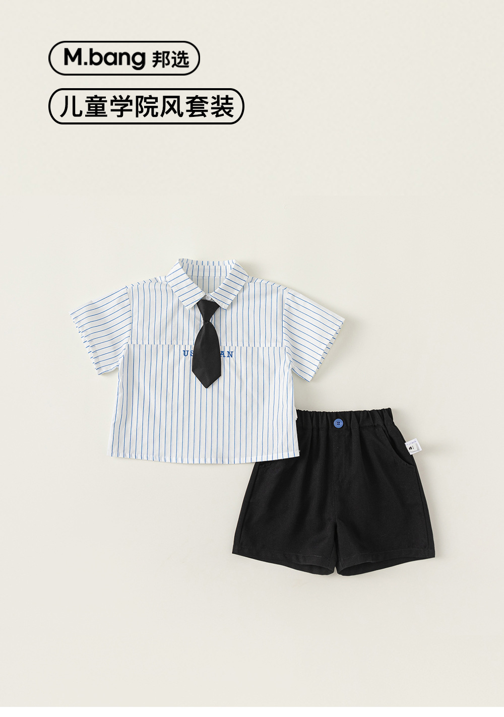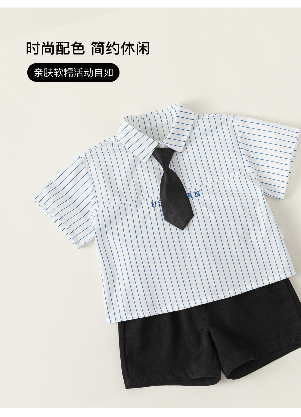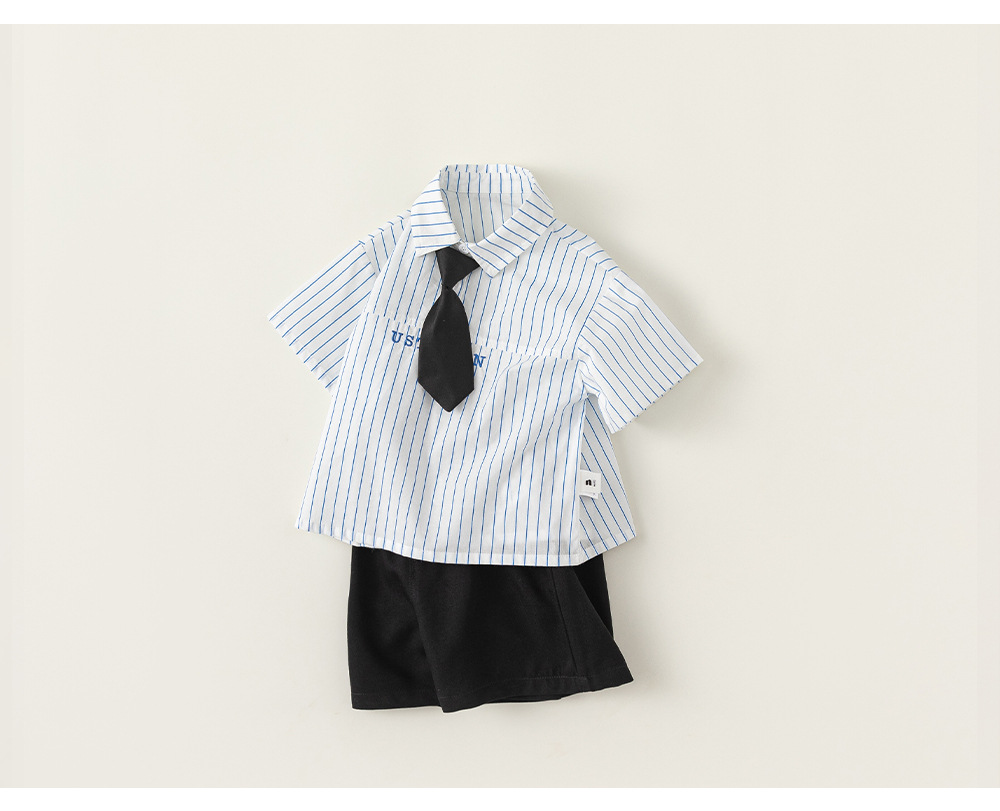 유바오 아동복 여름 아동복 남아용 컬리지 스타일 투피스 교복 어린이 넥타이 스트라이프 셔츠 유아복 세트