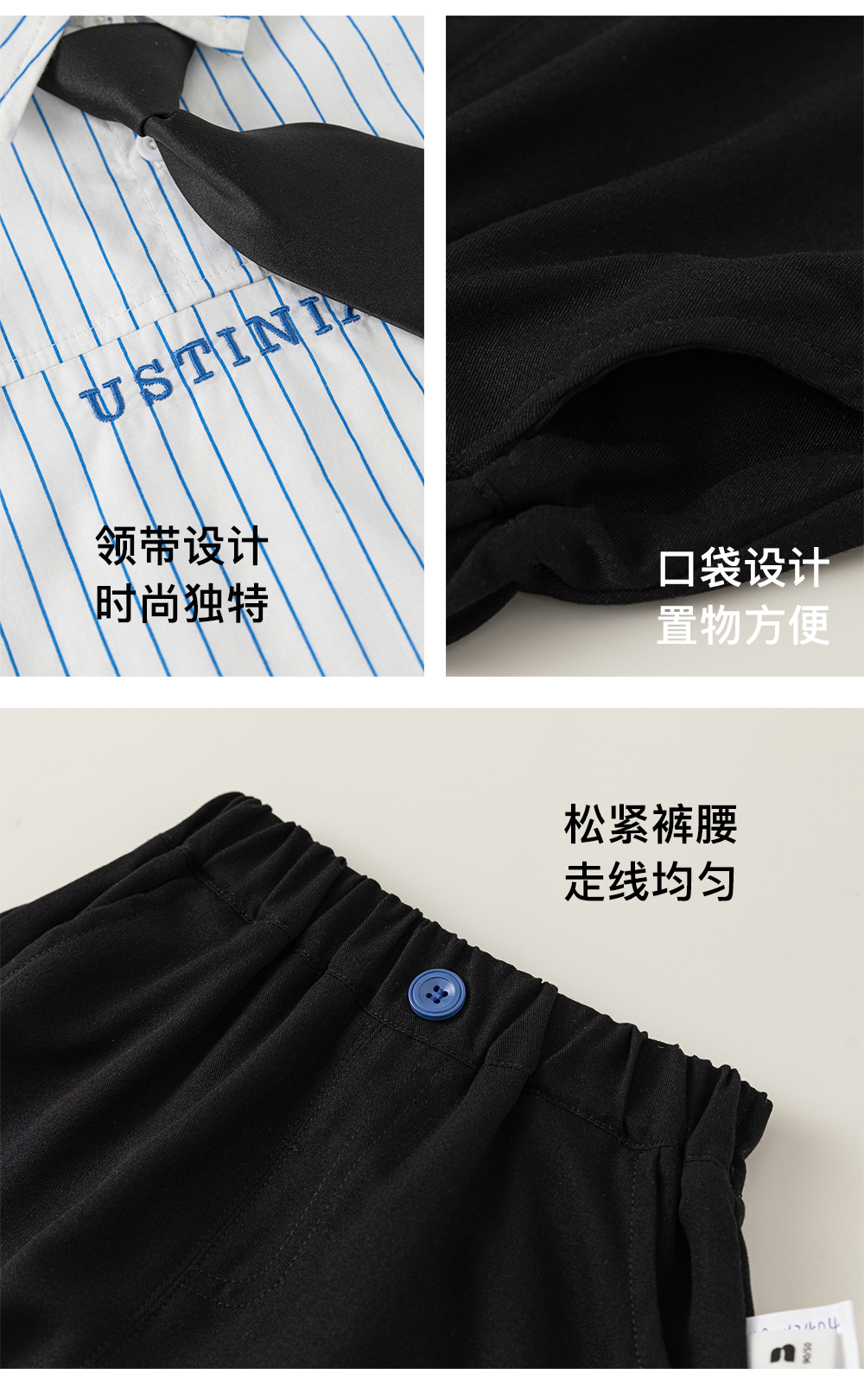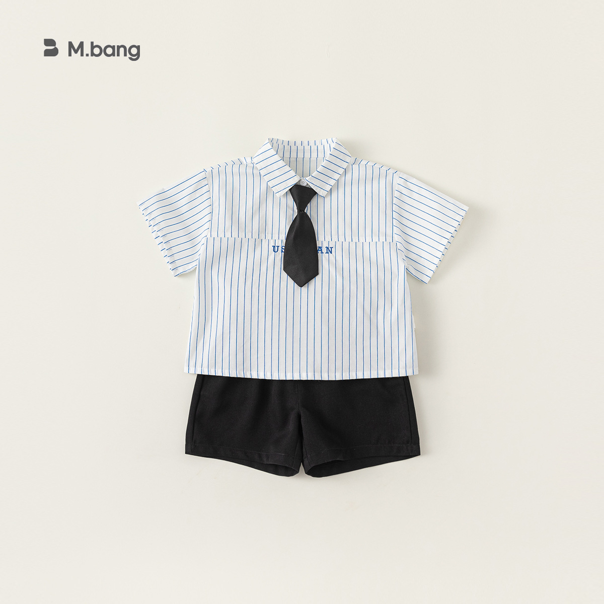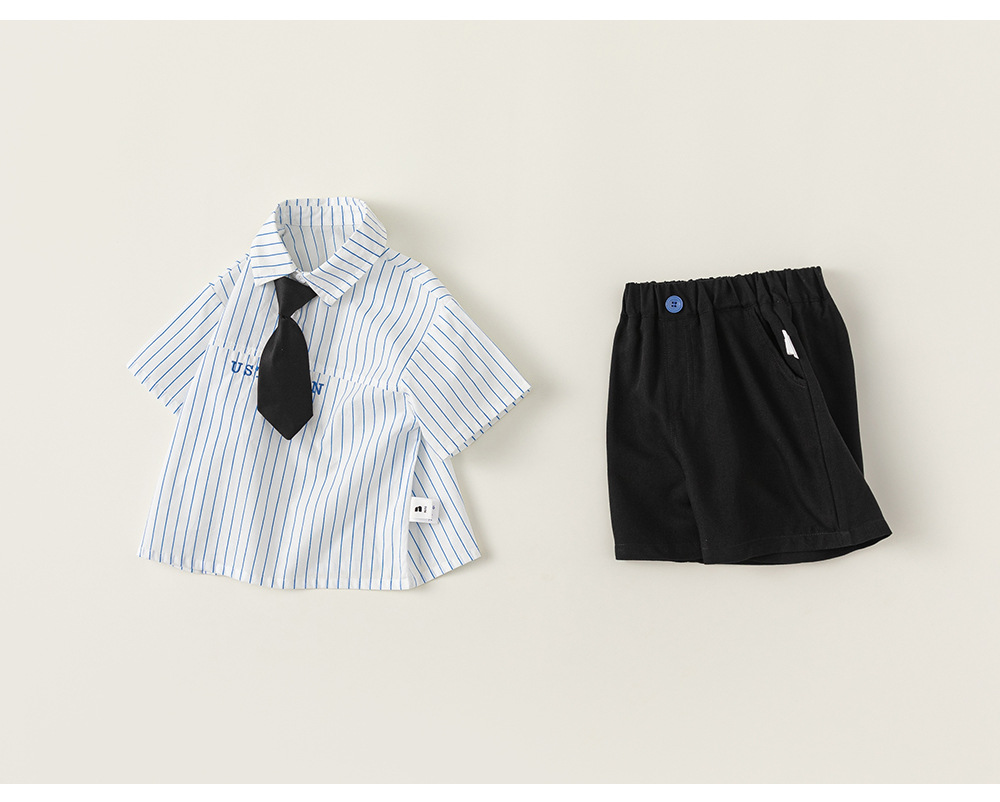 유바오 아동복 여름 아동복 남아용 컬리지 스타일 투피스 교복 어린이 넥타이 스트라이프 셔츠 유아복 세트