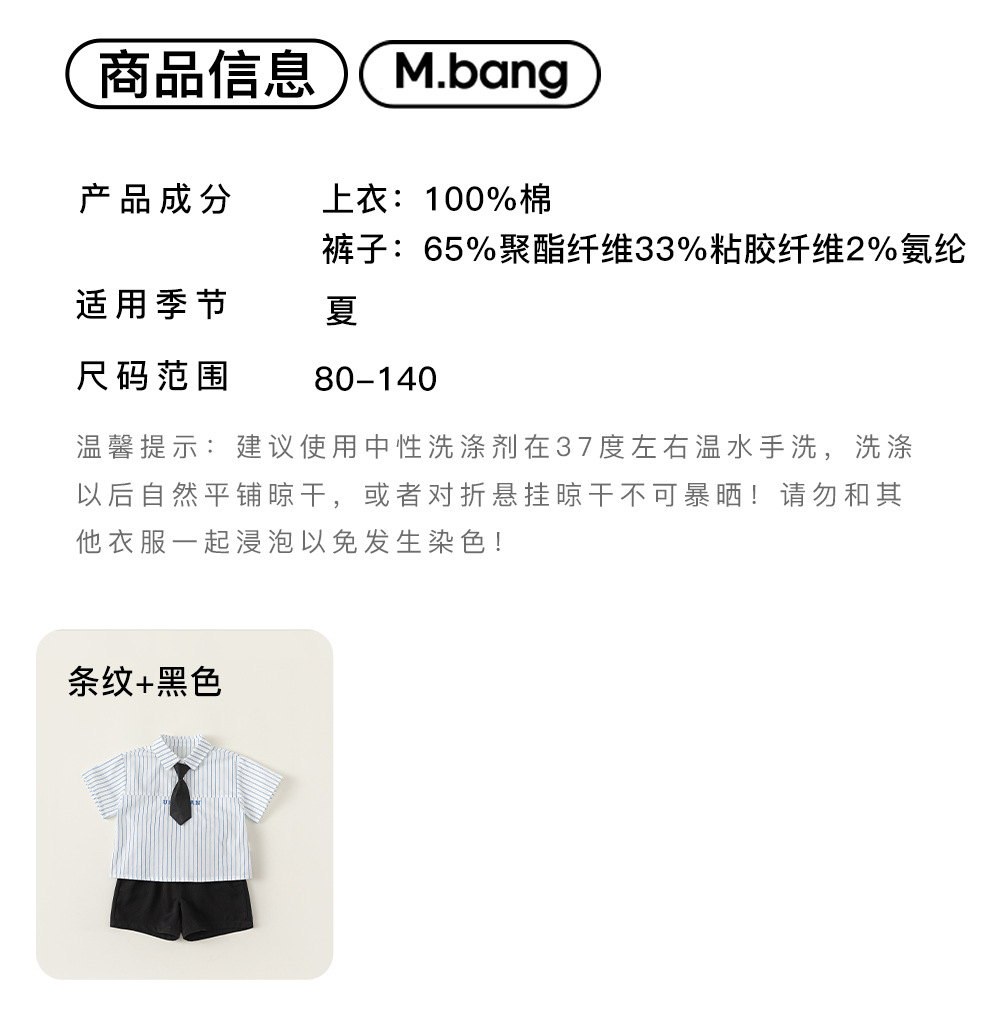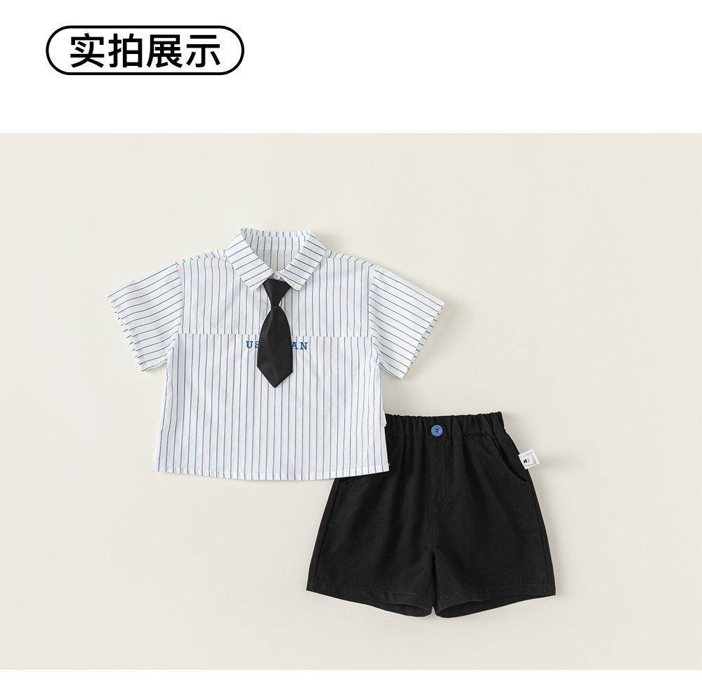 유바오 아동복 여름 아동복 남아용 컬리지 스타일 투피스 교복 어린이 넥타이 스트라이프 셔츠 유아복 세트스토어 가기