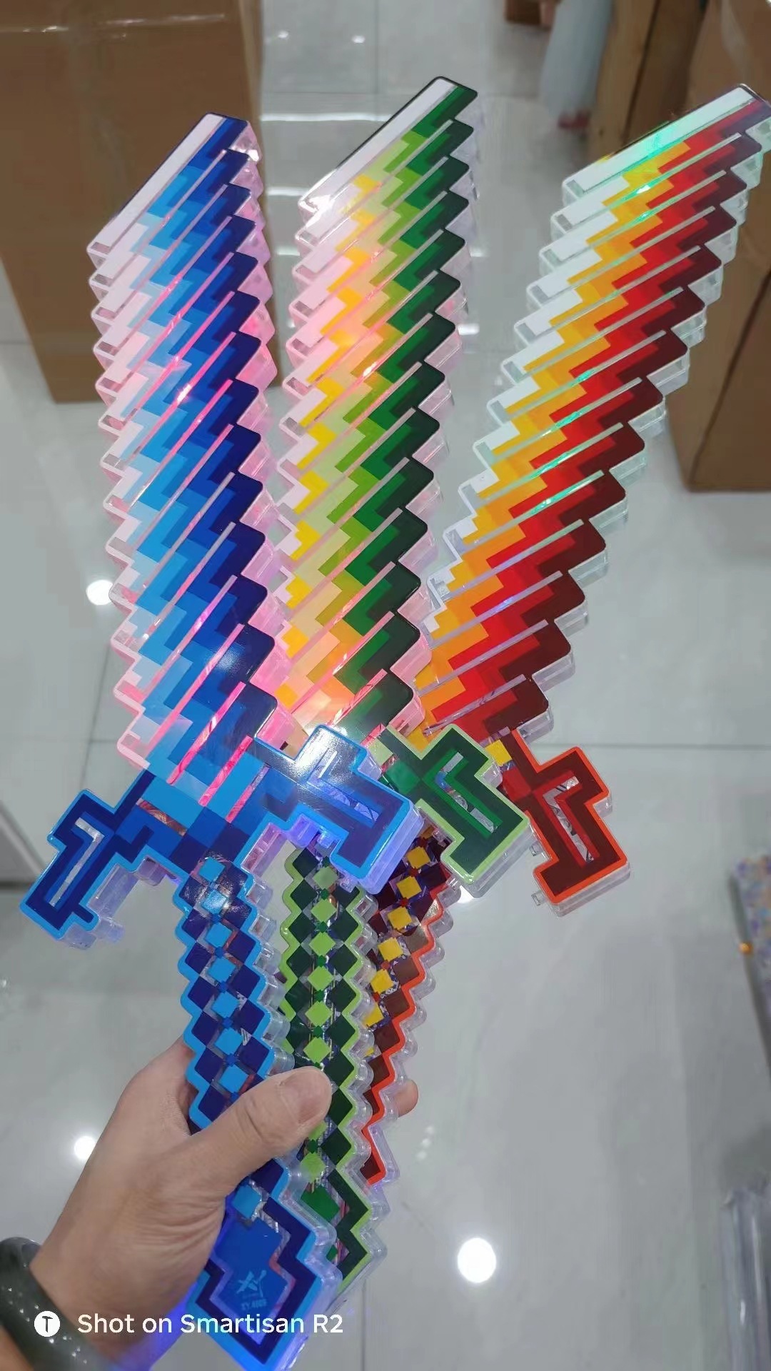 큰 내 세계 플래시 검 LED 빛나는 모자이크 장난감 검 마구간 어린이 플래시 장난감스토어 가기
