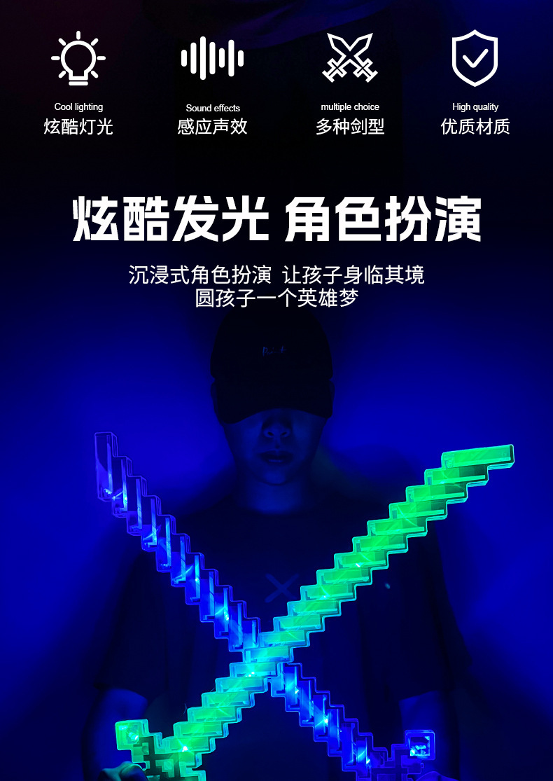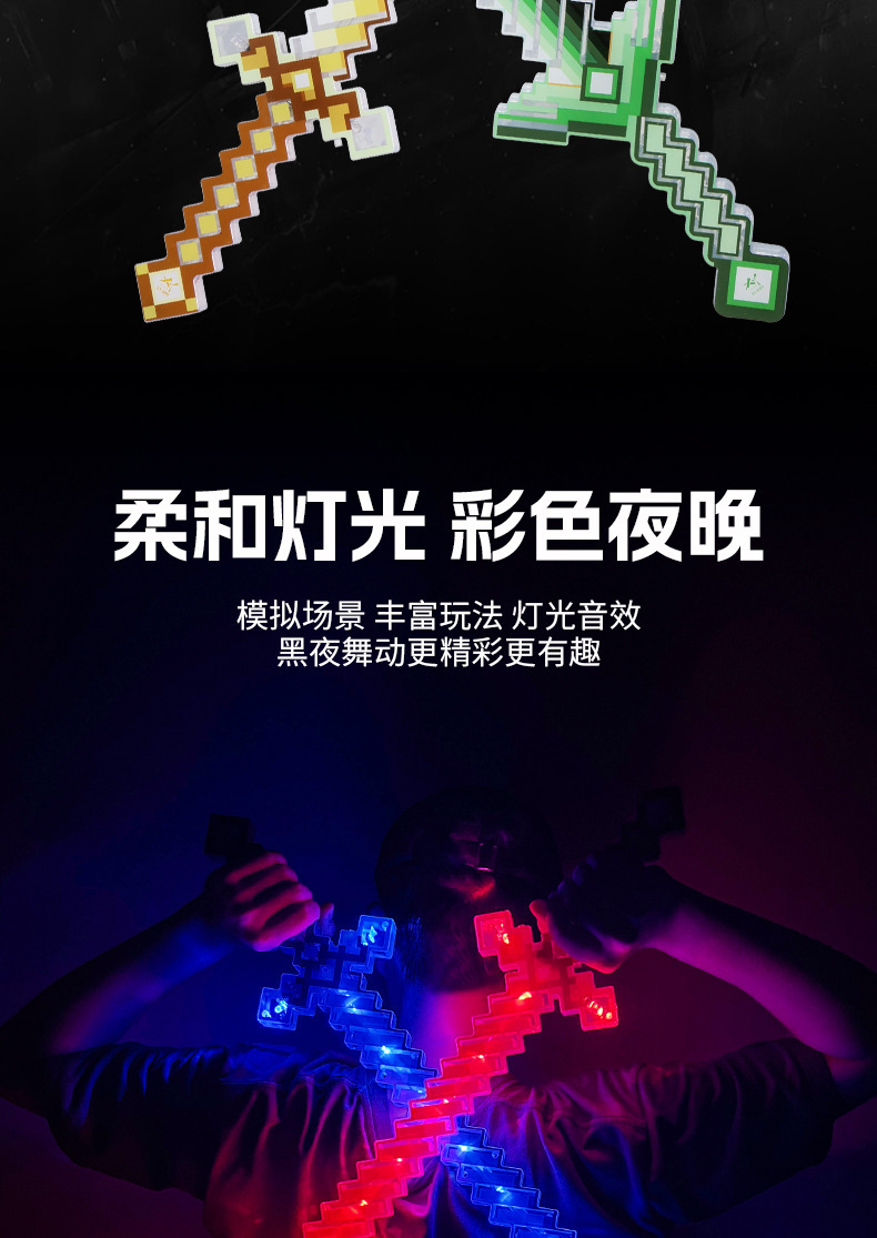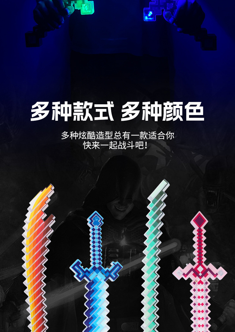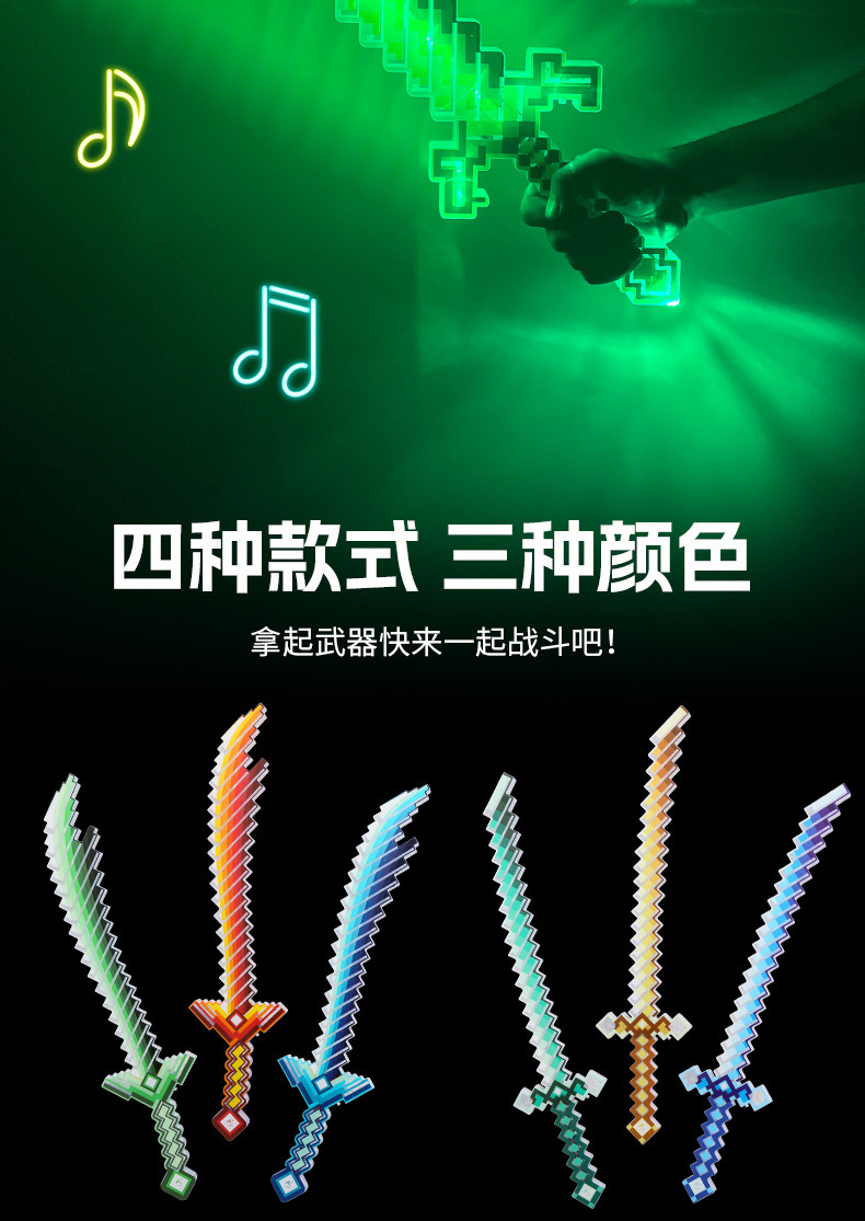 携业大号我的世界闪光剑 LED发光马赛克玩具剑 地摊儿童闪光玩具