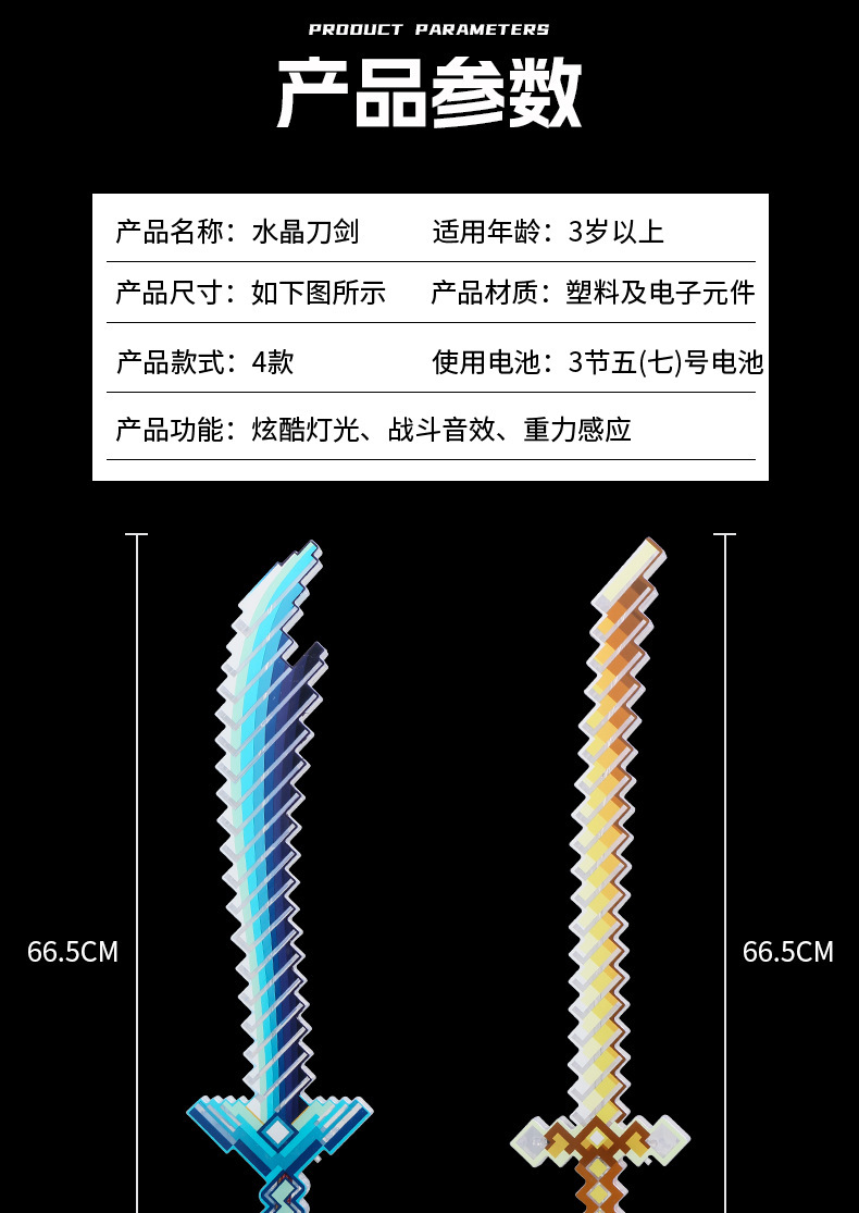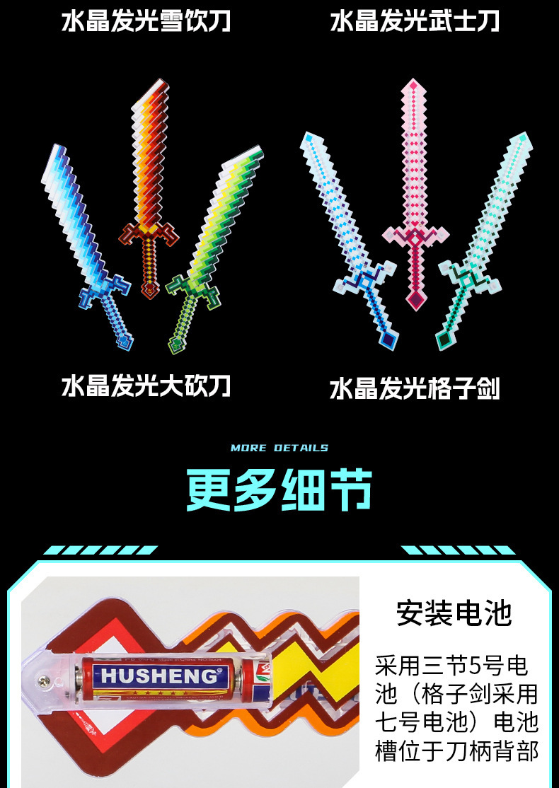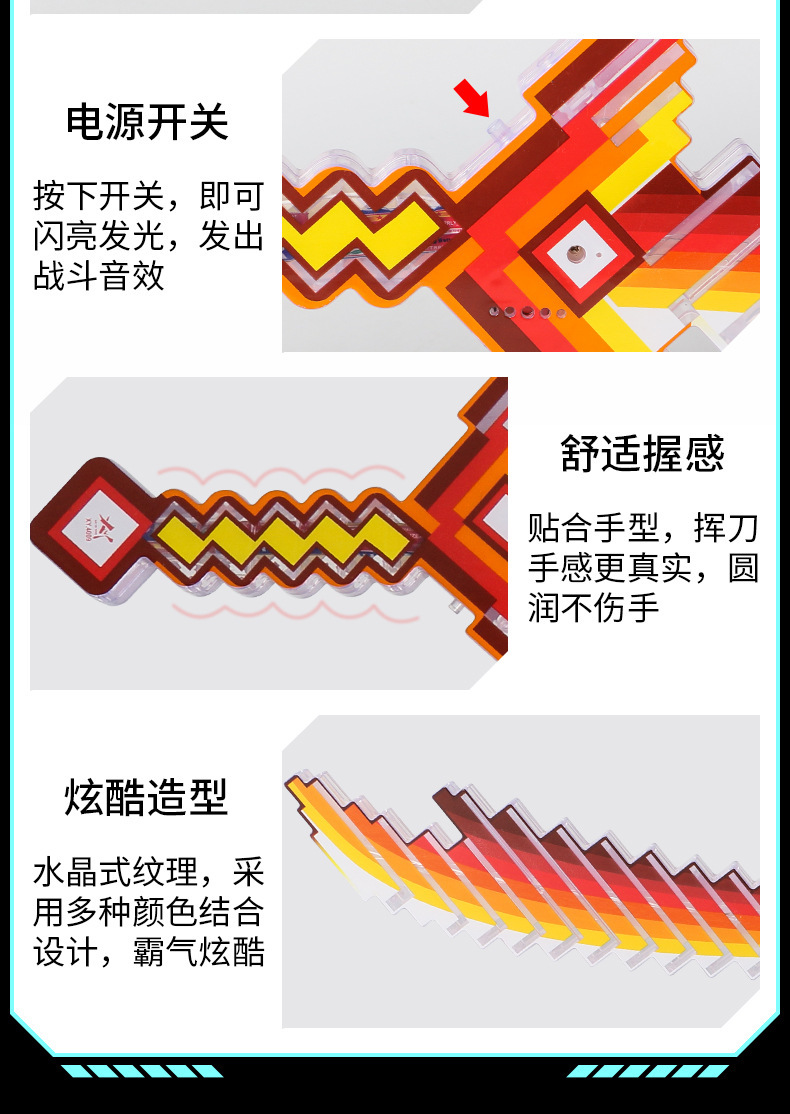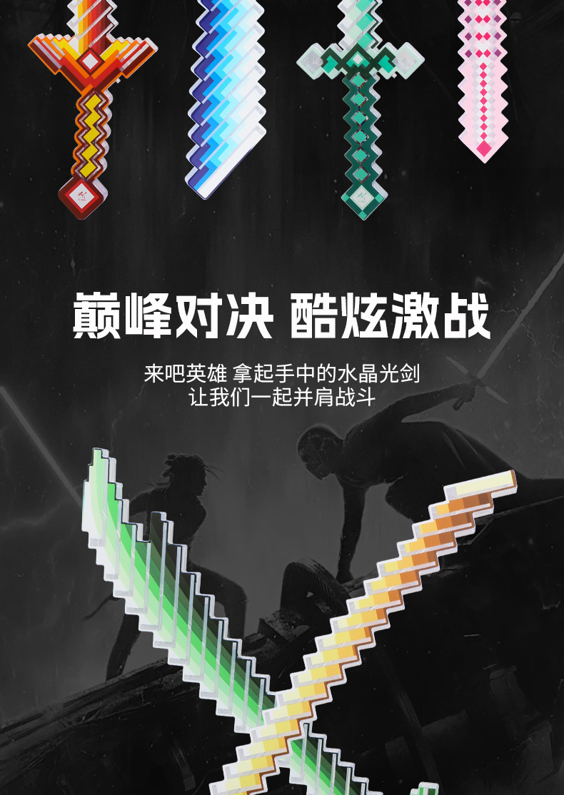 携业大号我的世界闪光剑 LED发光马赛克玩具剑 地摊儿童闪光玩具