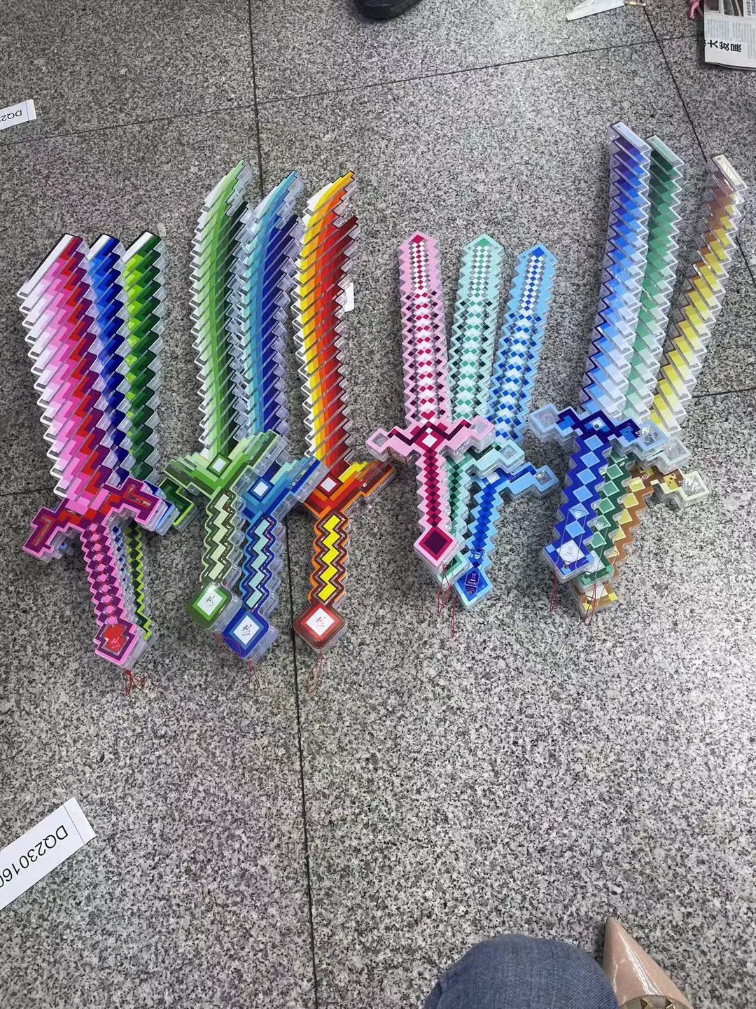 큰 내 세계 플래시 검 LED 빛나는 모자이크 장난감 검 마구간 어린이 플래시 장난감