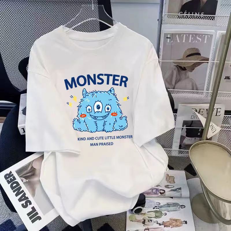 • 홍콩 스타일 아이스 실크 짧은 소매 흰색 괴물