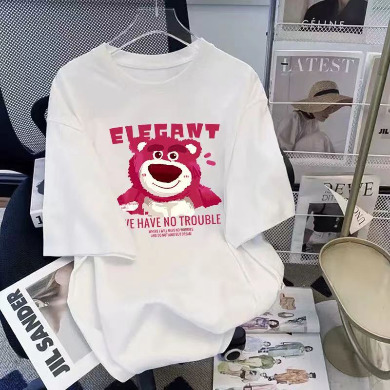 • 홍콩 스타일 아이스 실크 짧은 소매 화이트 딸기 곰