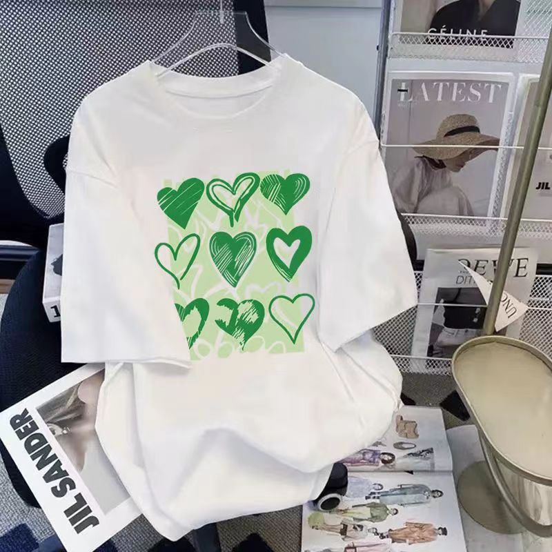 • 홍콩 스타일 얼음 실크 짧은 소매 흰색 녹색 손으로 그린 사랑