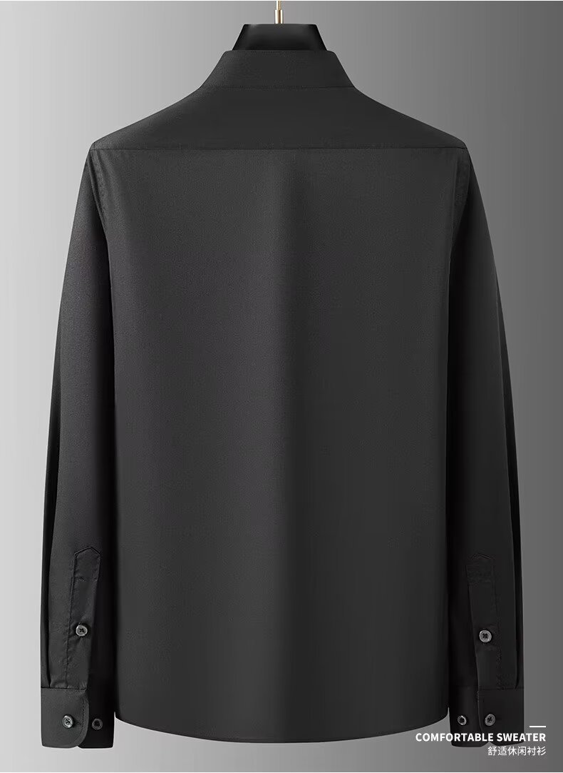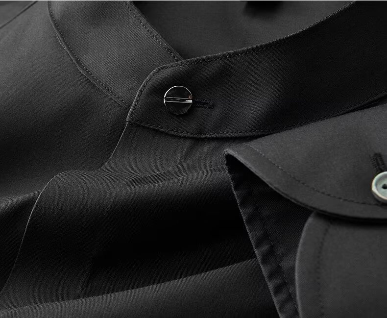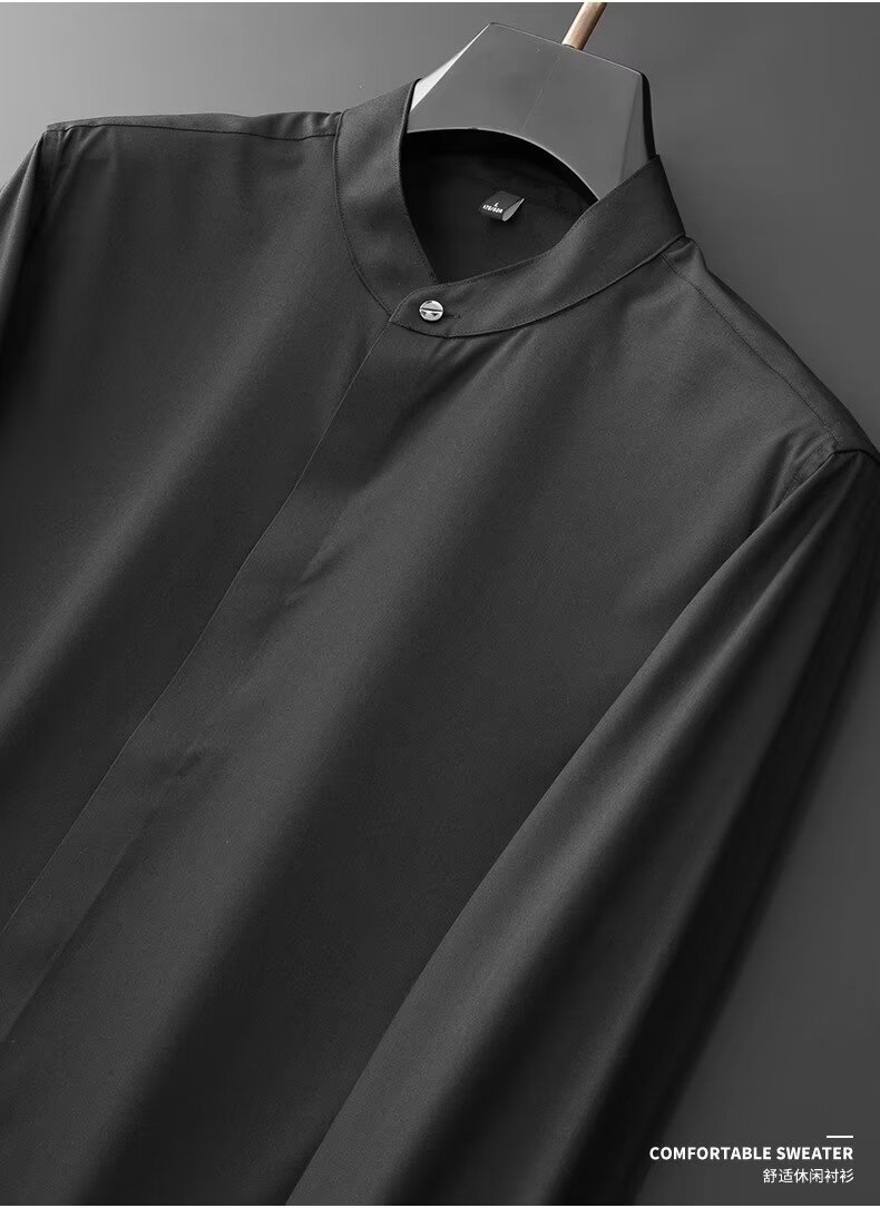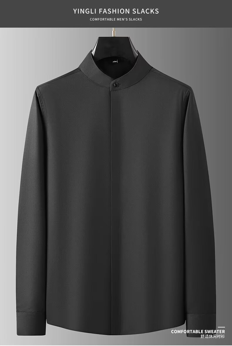 봄, 가을 남성용 크로스보더 실키 노아이언 스탠드업 칼라 긴팔 셔츠 남성용 슬림 솔리드 컬러 셔츠 캐주얼 비즈니스 정장 인치