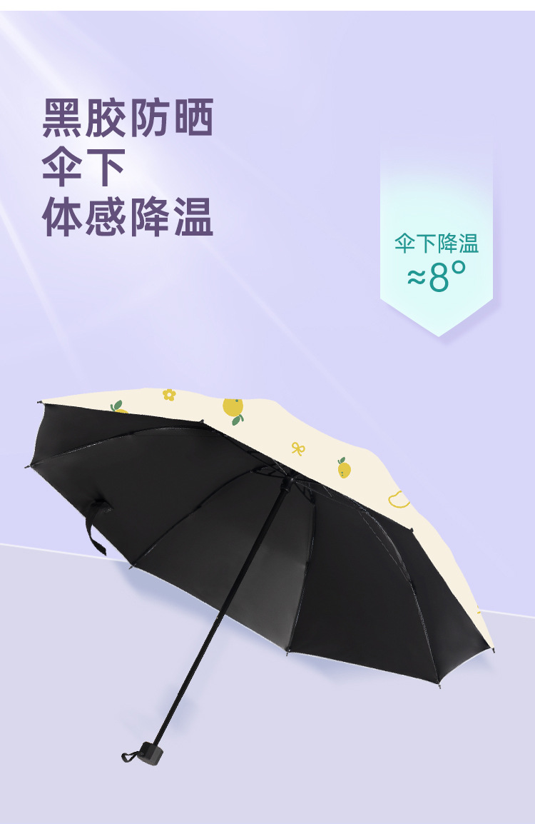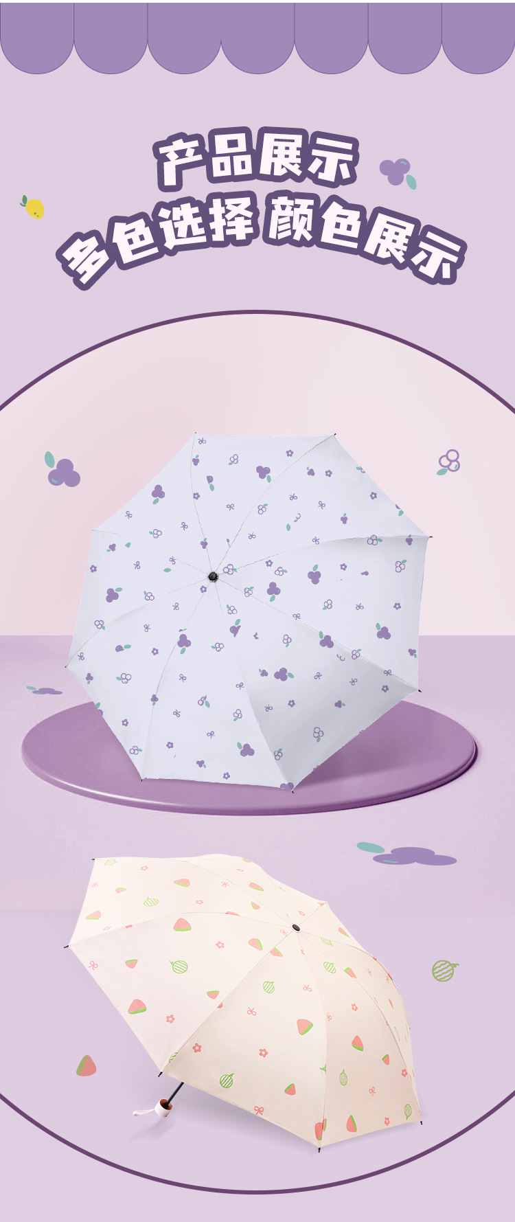 큰 밝은 우산 접이식 우산 8 뼈 4 배 검은 플라스틱 차양 우산 플립 우산 신선한 과일 우산 수동 태양 우산