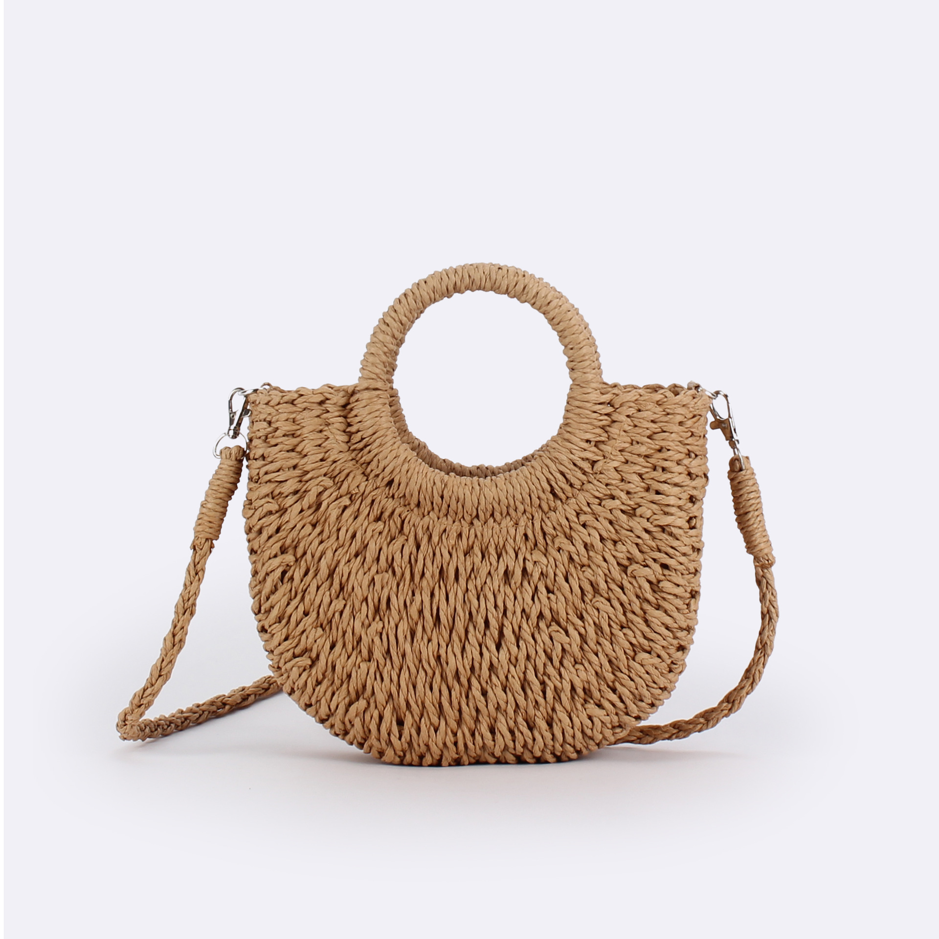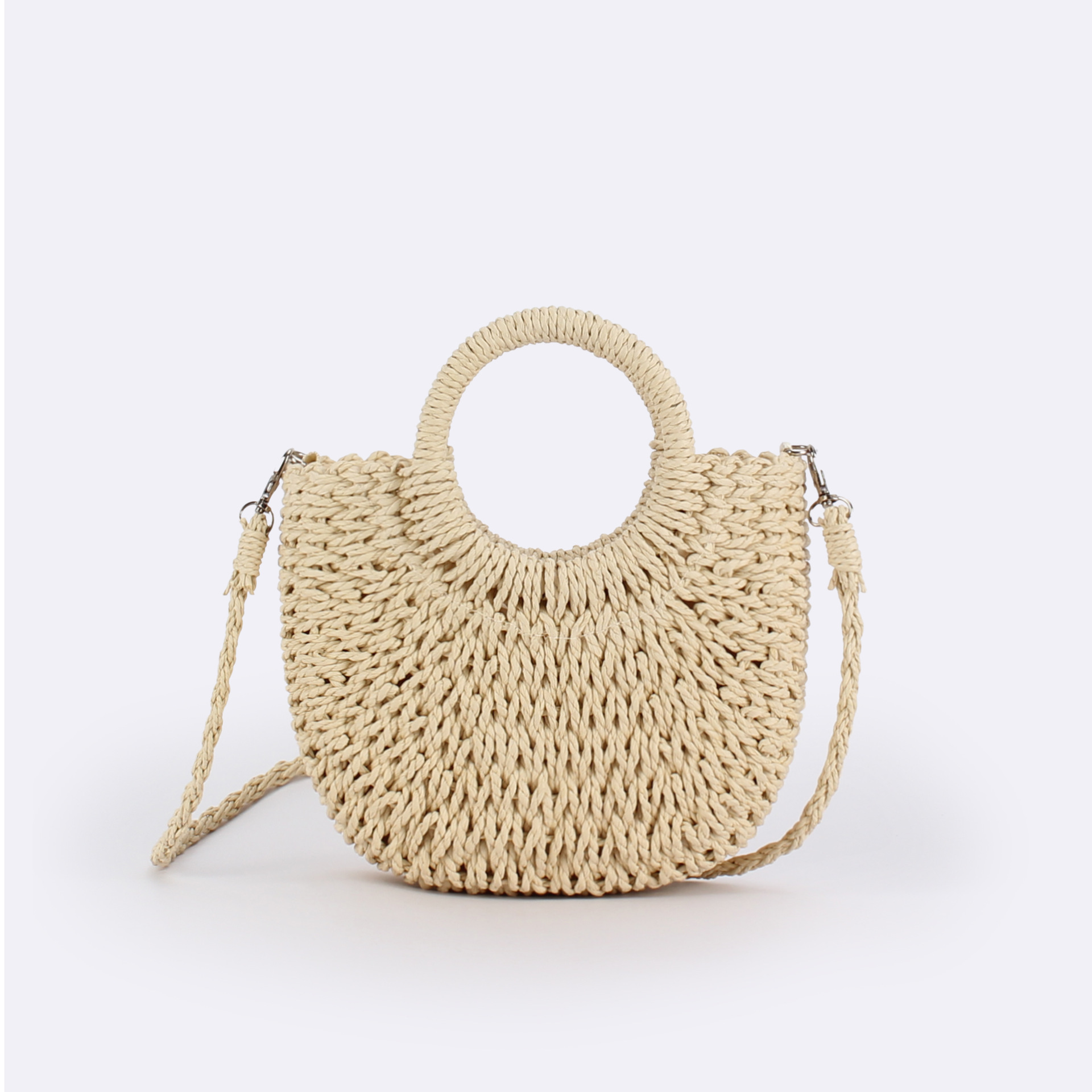 간단한 in 인기있는 반원 밀짚 가방 해변 수제 짠 가방 휴가 여행 손을 들고 크로스 바디 이중 목적 가방