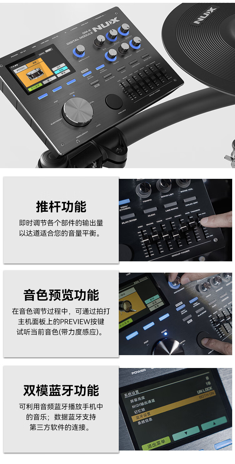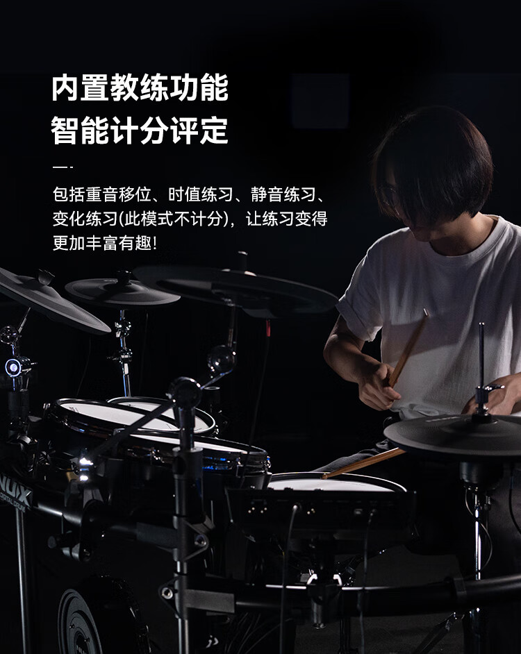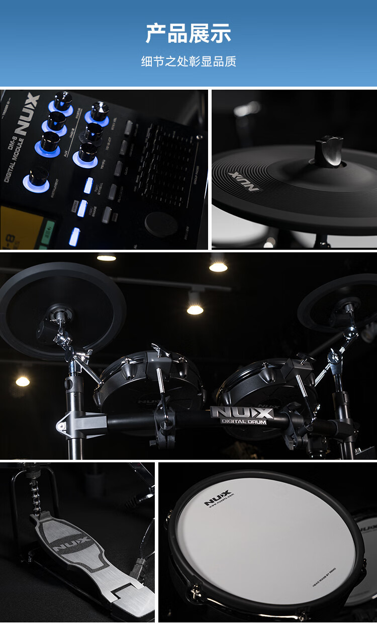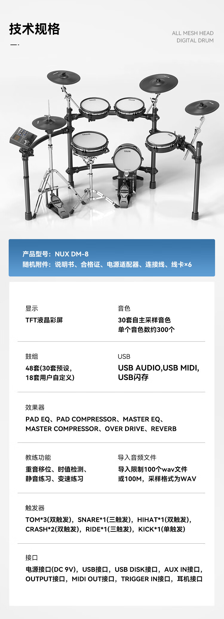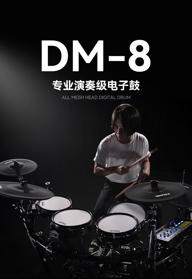 Nuxdm-8 풀 메쉬 전자 드럼 5 드럼 4 조각 전문 교육 전문 성능 수준 전자 드럼 연주 테이블스토어 가기