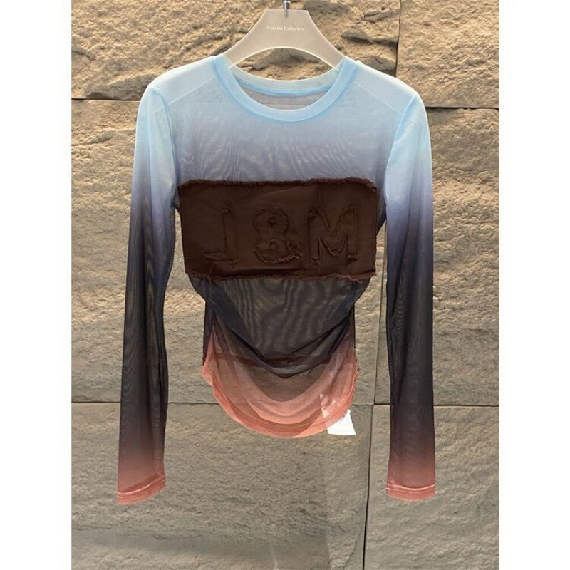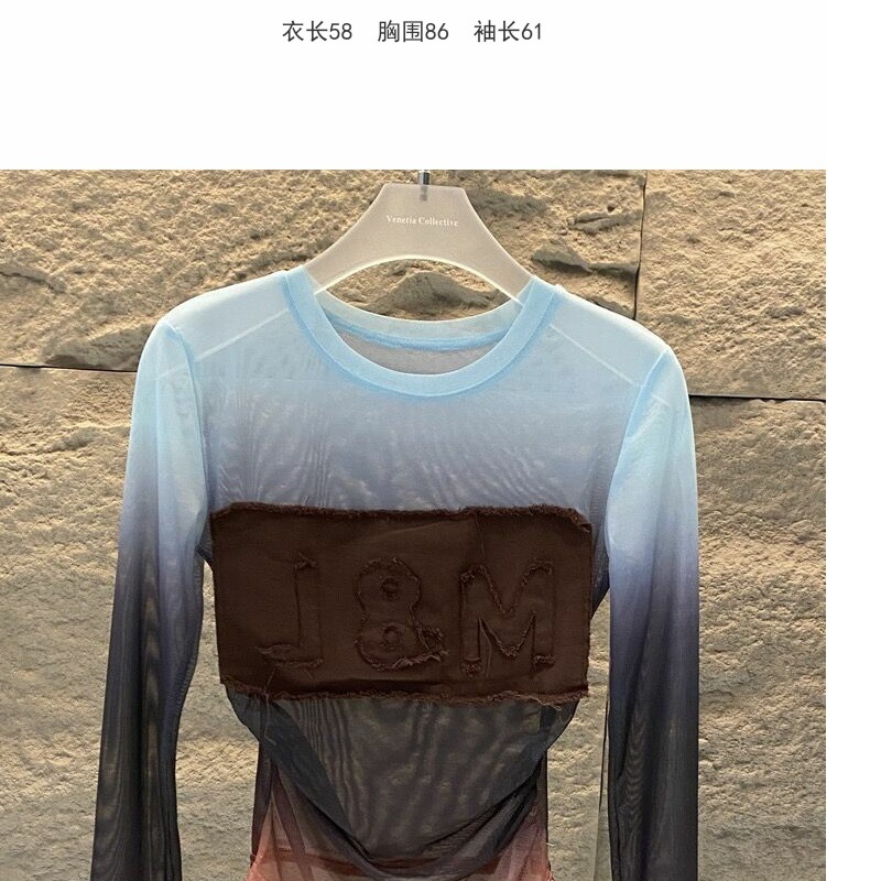 유럽 패션 젊은 편지 인쇄 그라디언트 컬러 메쉬 티셔츠 여성 2023 새로운 슬림 풀오버 긴 소매 탑스토어 가기