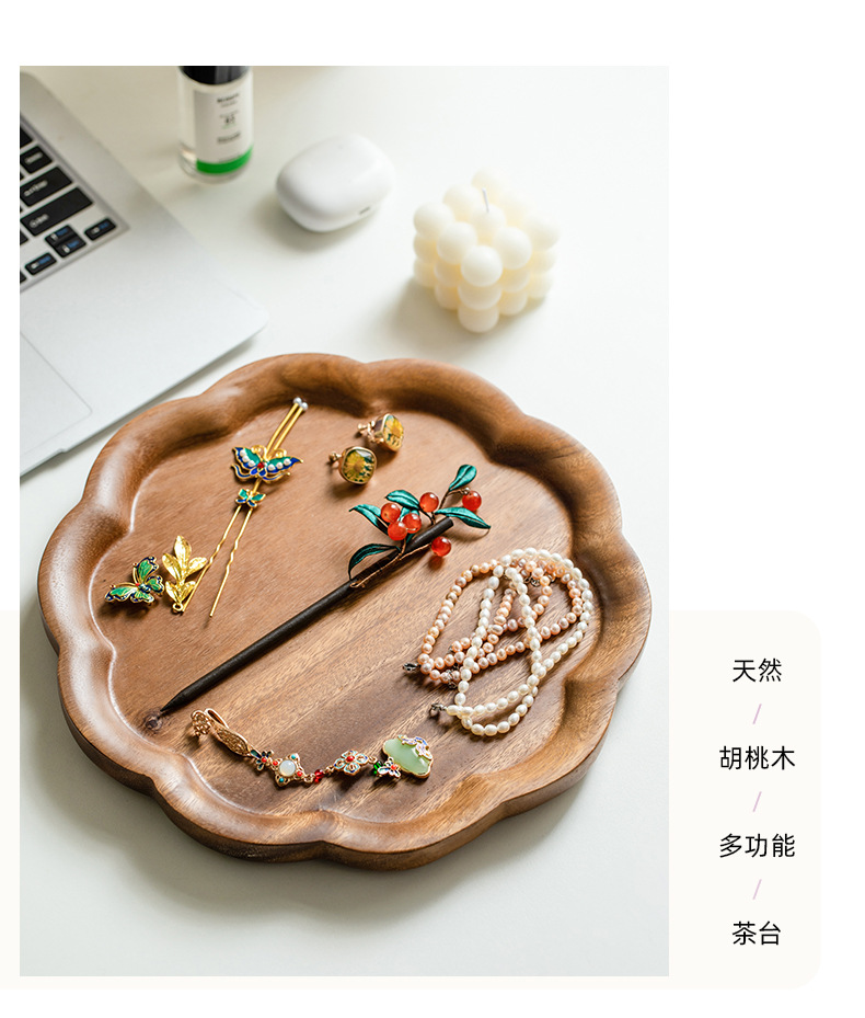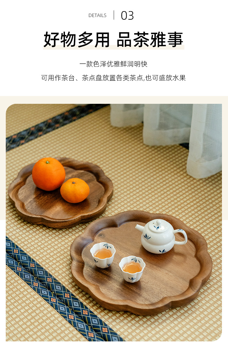 창푸 주 호두 차 트레이 가정용 단단한 나무 트레이 나무 마른 차 테이블 과일 접시 냄비 서빙 트레이 쿵푸 차 세트스토어 가기