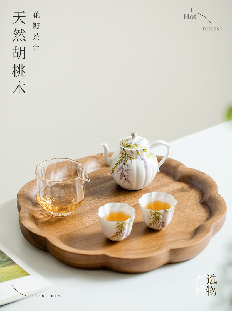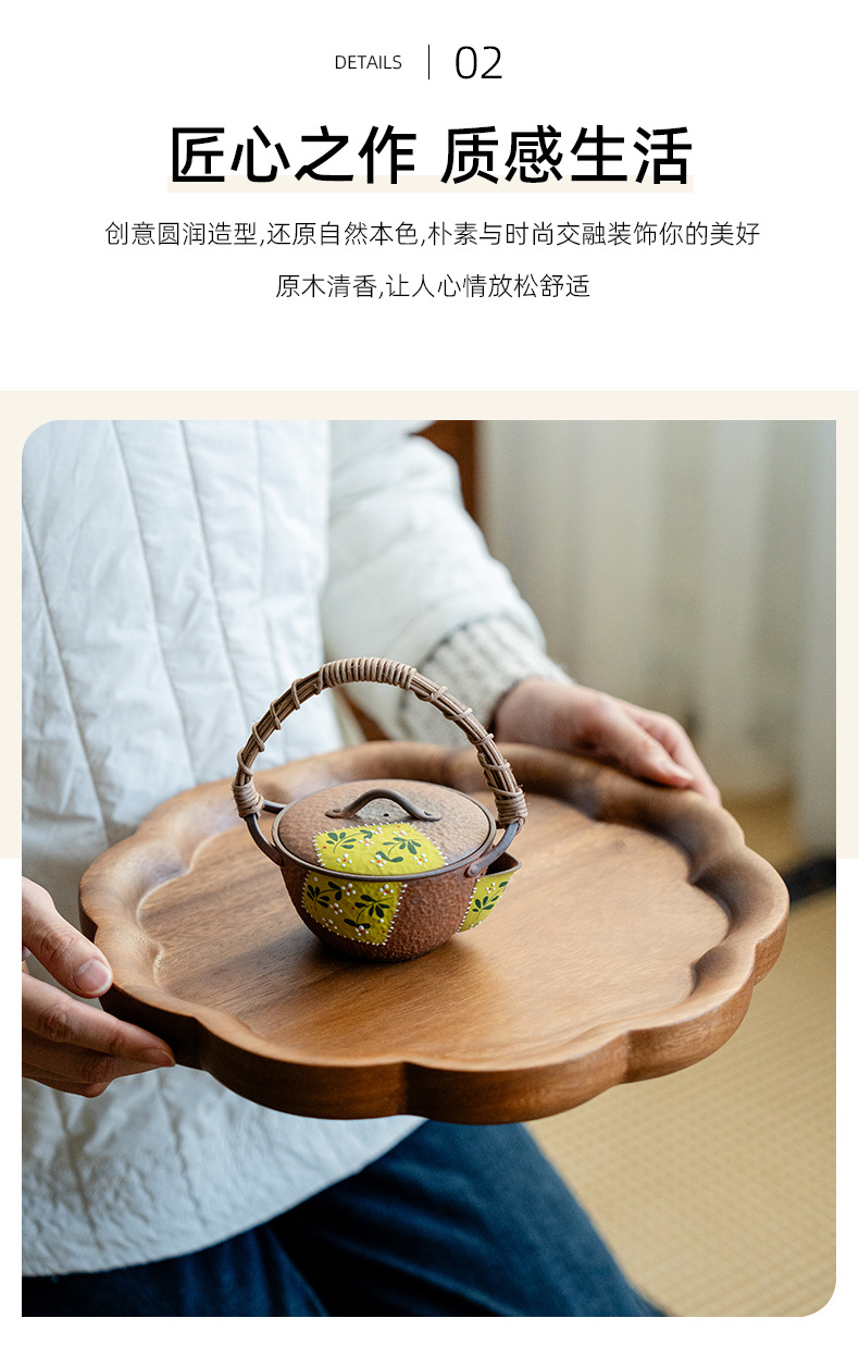 창푸 주 호두 차 트레이 가정용 단단한 나무 트레이 나무 마른 차 테이블 과일 접시 냄비 서빙 트레이 쿵푸 차 세트