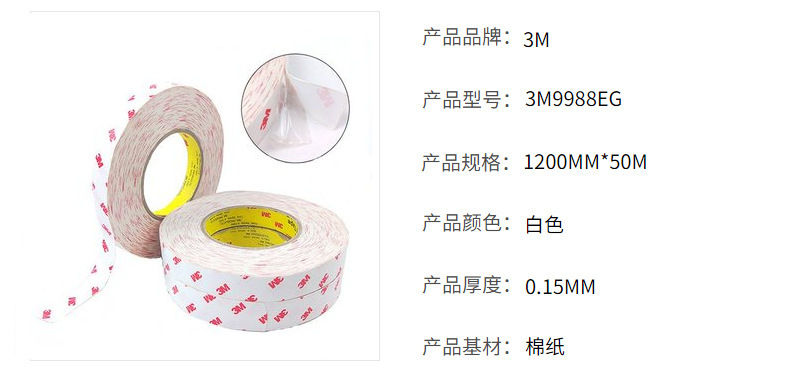 3M9988EG 초박형 부직포 흰색 강한 아크릴면 종이 접착제 고온 저항 비 마킹 테이프 다이 절단 가공스토어 가기