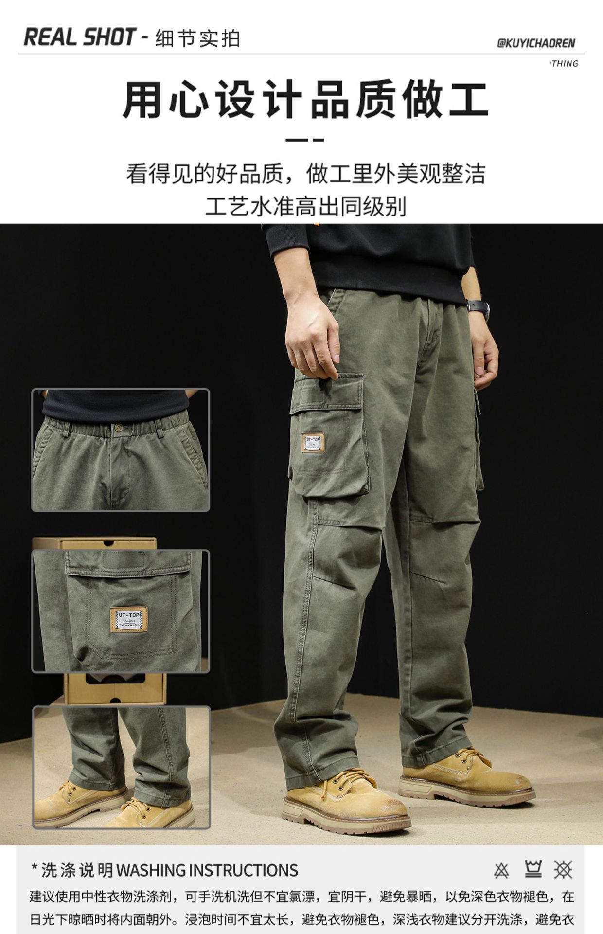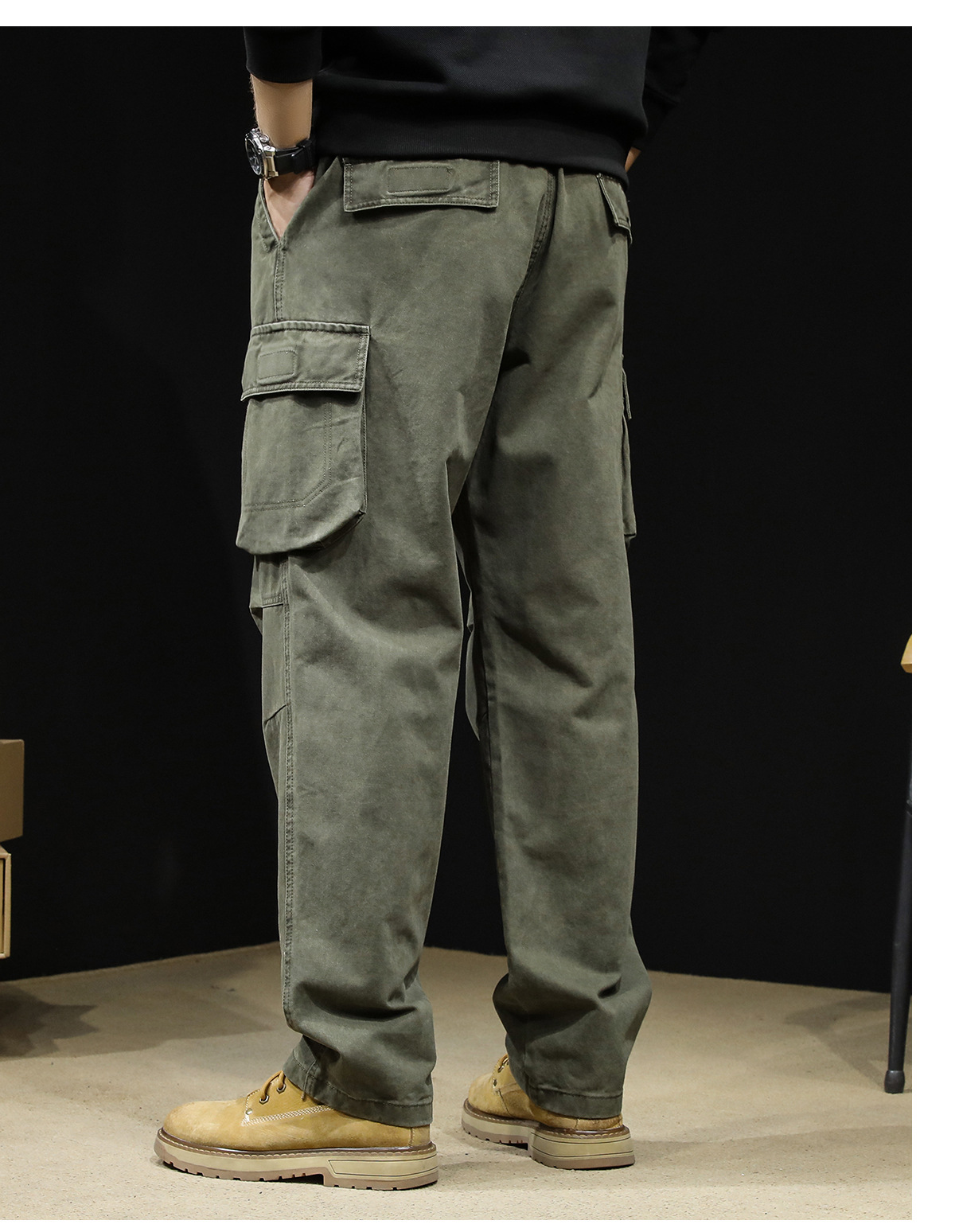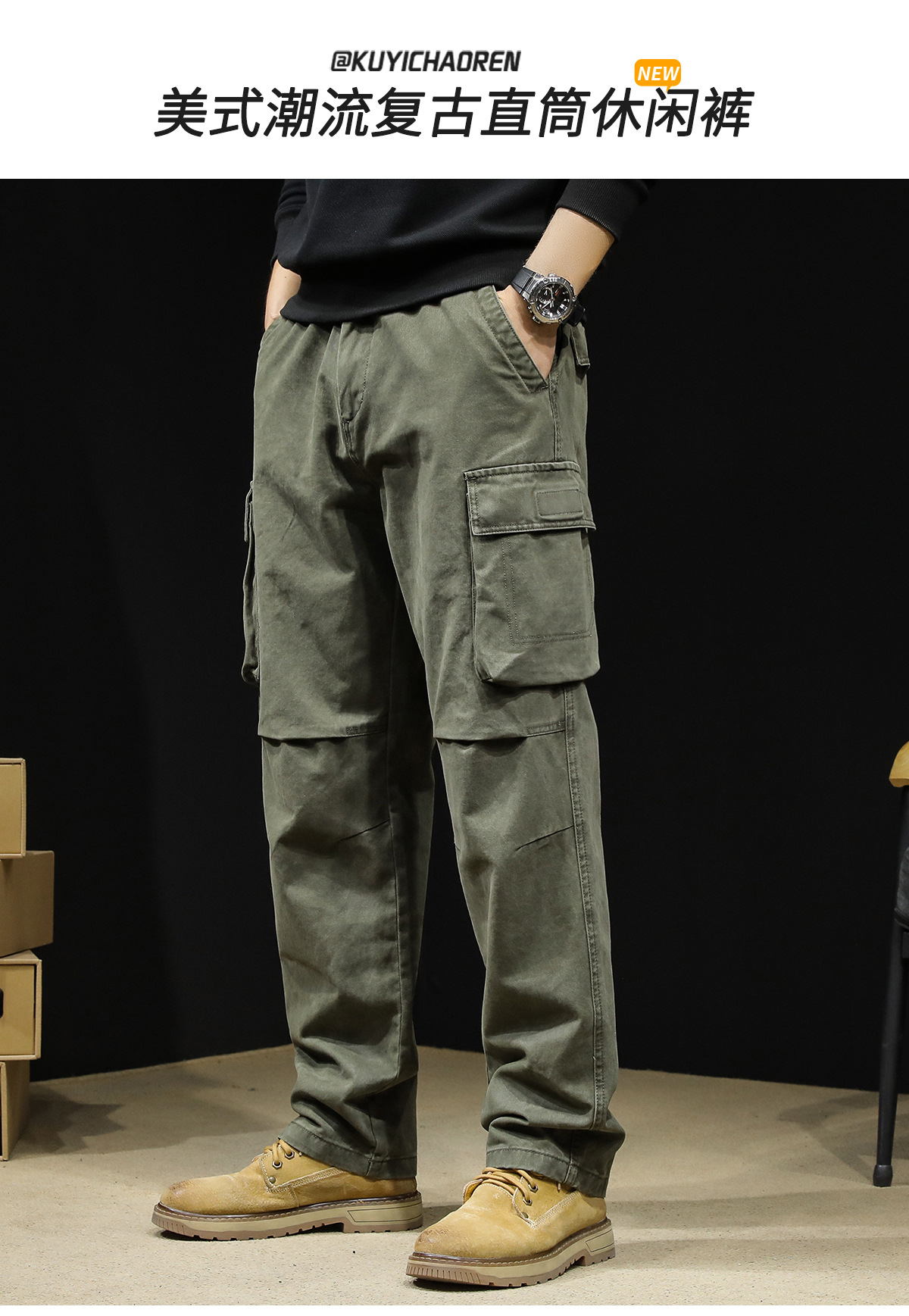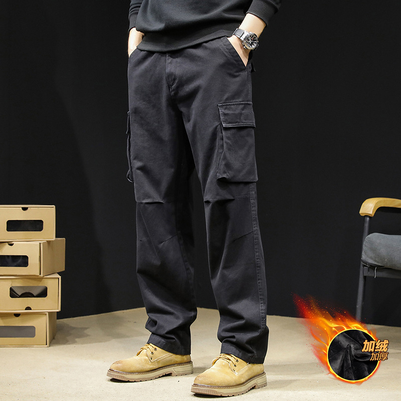 가을 신상품 두꺼운 벨벳 직선형 작업복 바지 남성용 가을 겨울 캐주얼 바지 대형 사이즈 미국식 작업복 바지 남성용스토어 가기
