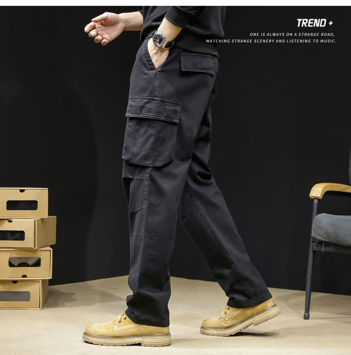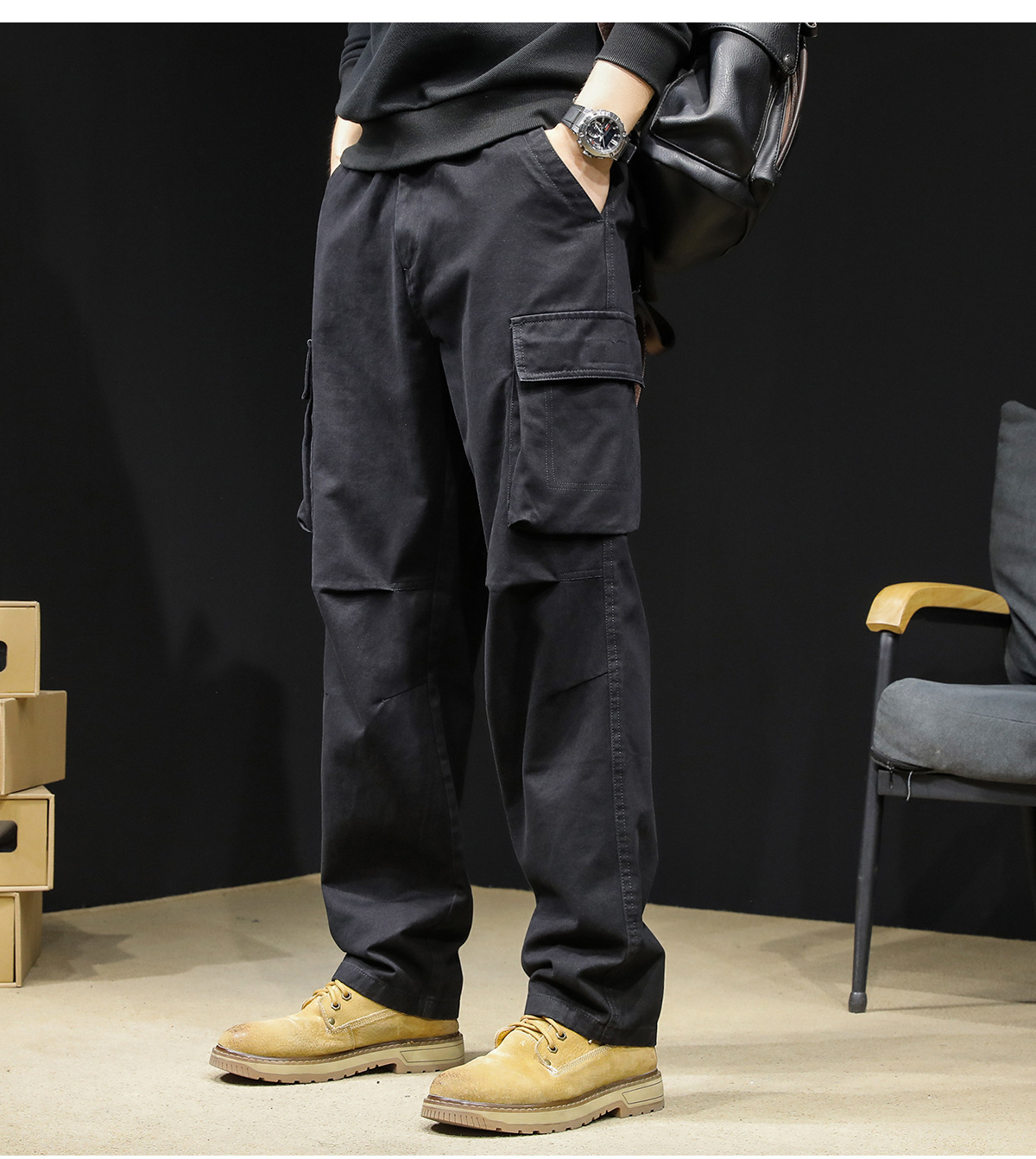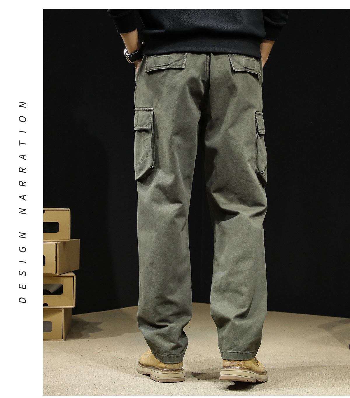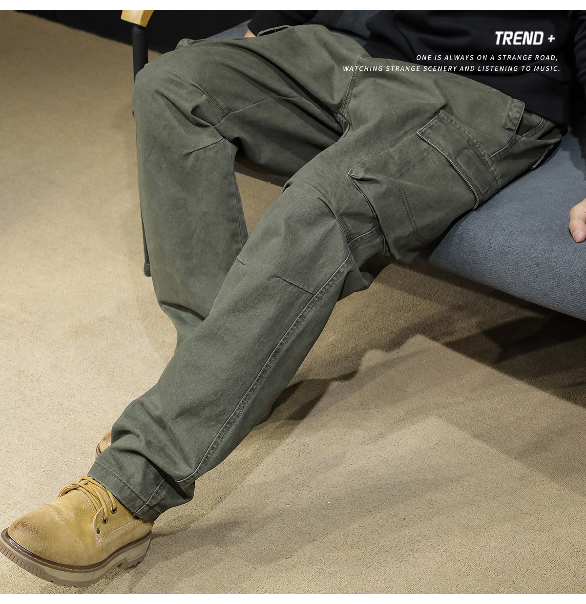 가을 신상품 두꺼운 벨벳 직선형 작업복 바지 남성용 가을 겨울 캐주얼 바지 대형 사이즈 미국식 작업복 바지 남성용스토어 가기