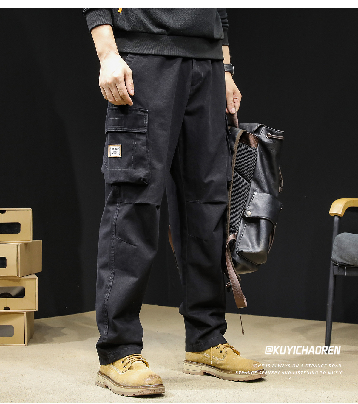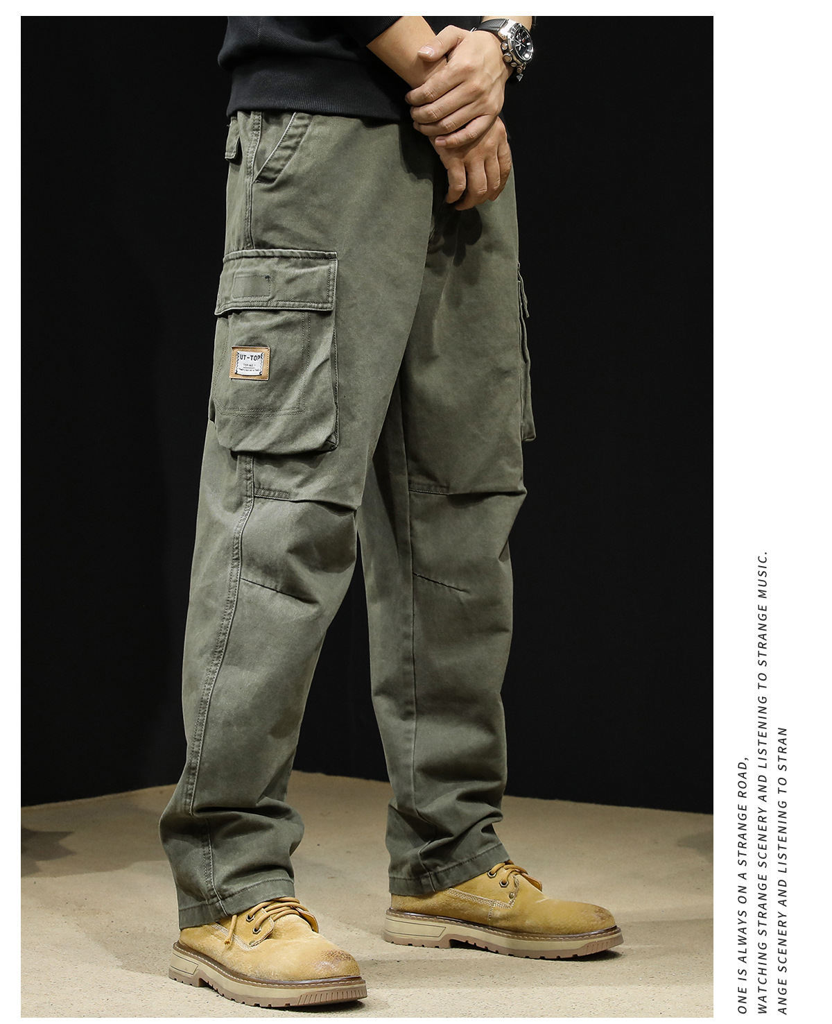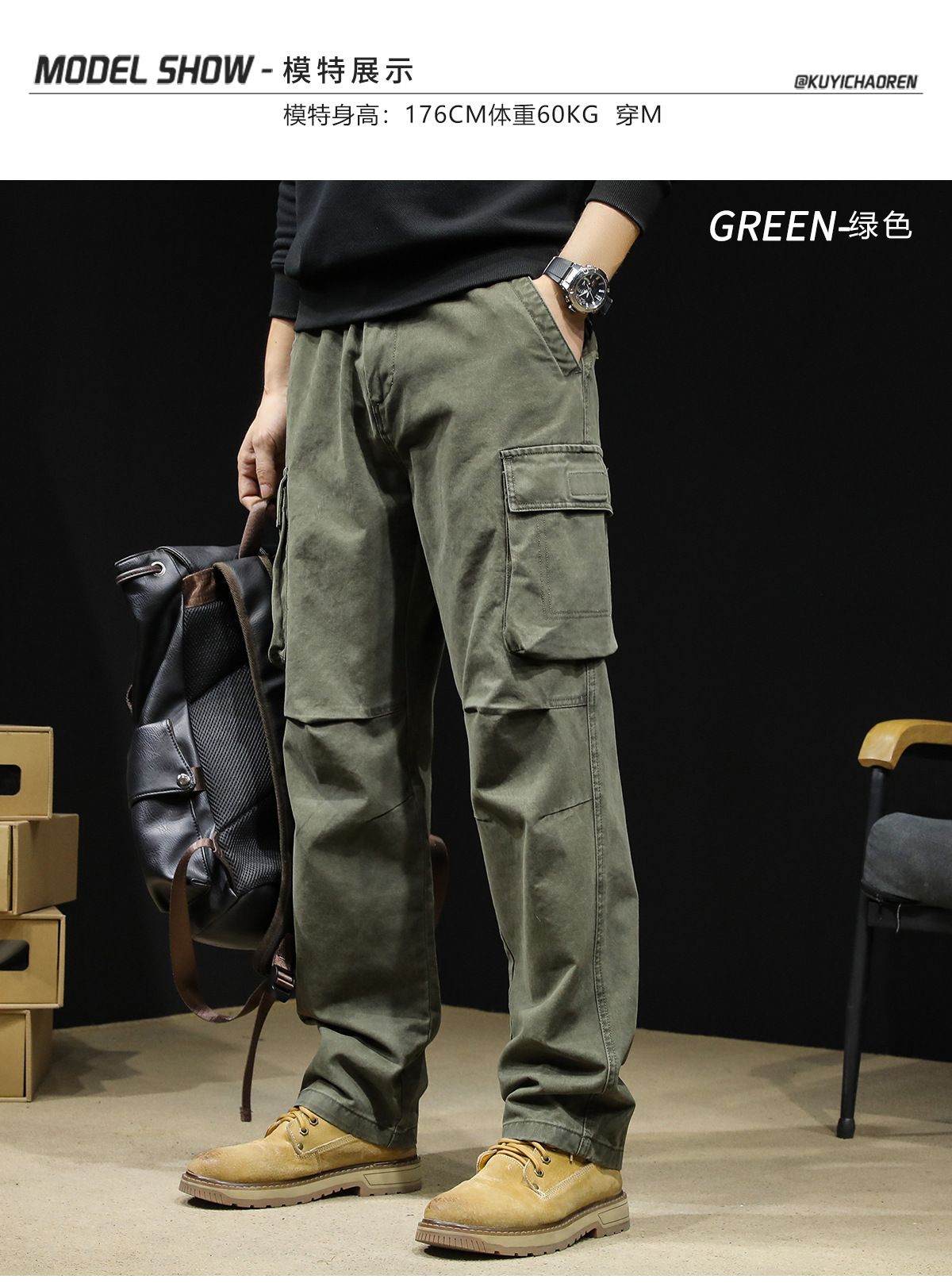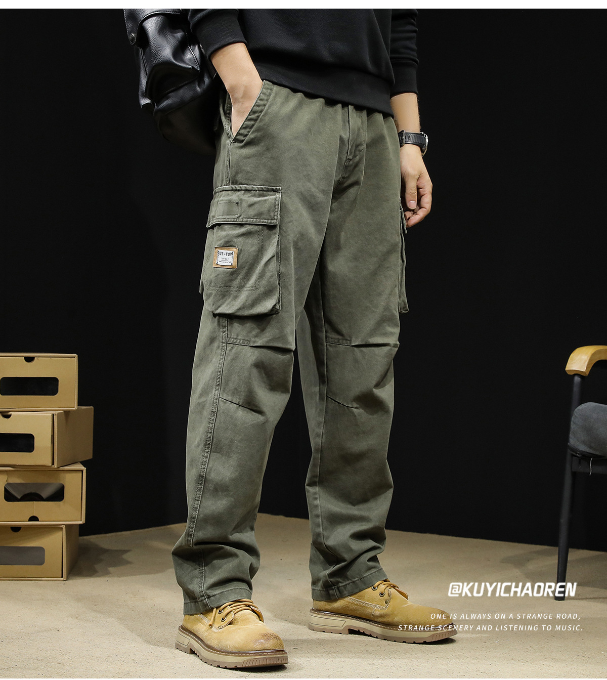 가을 신상품 두꺼운 벨벳 직선형 작업복 바지 남성용 가을 겨울 캐주얼 바지 대형 사이즈 미국식 작업복 바지 남성용스토어 가기