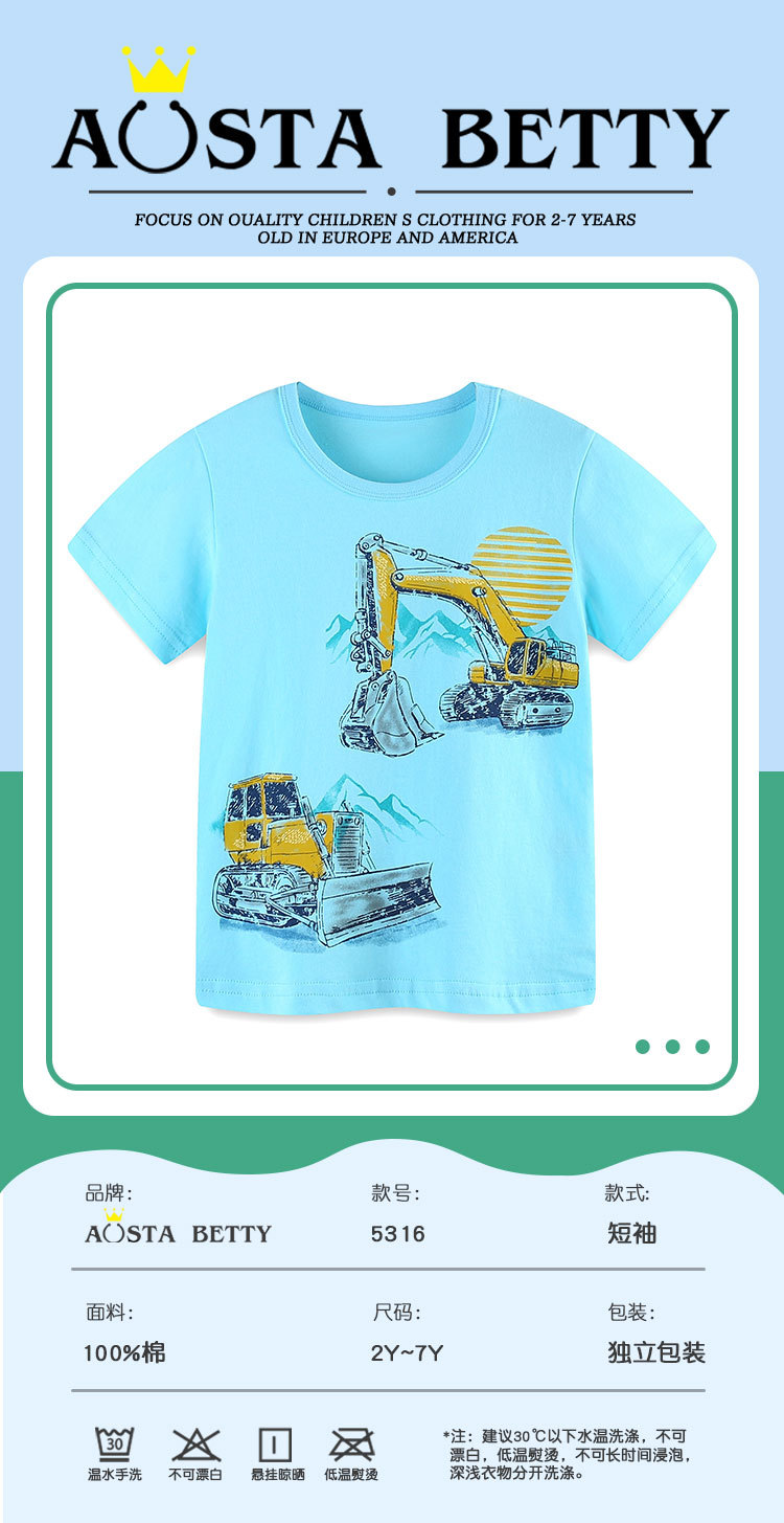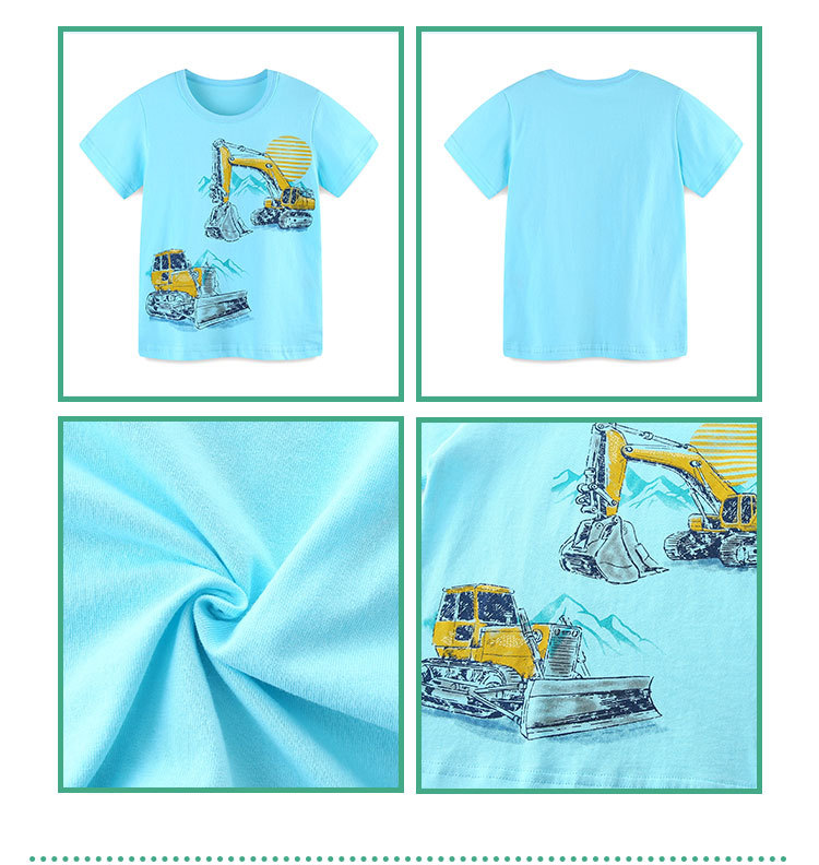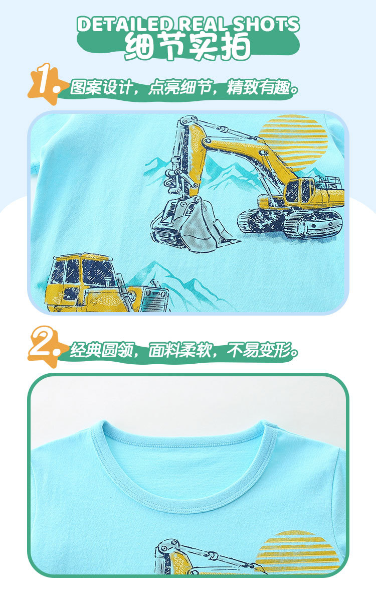 유럽과 미국 스타일의 소년 티셔츠 26 여름 신상 만화 굴착기 프린트 스포츠 셔츠 어린이 라운드넥 반팔 상의