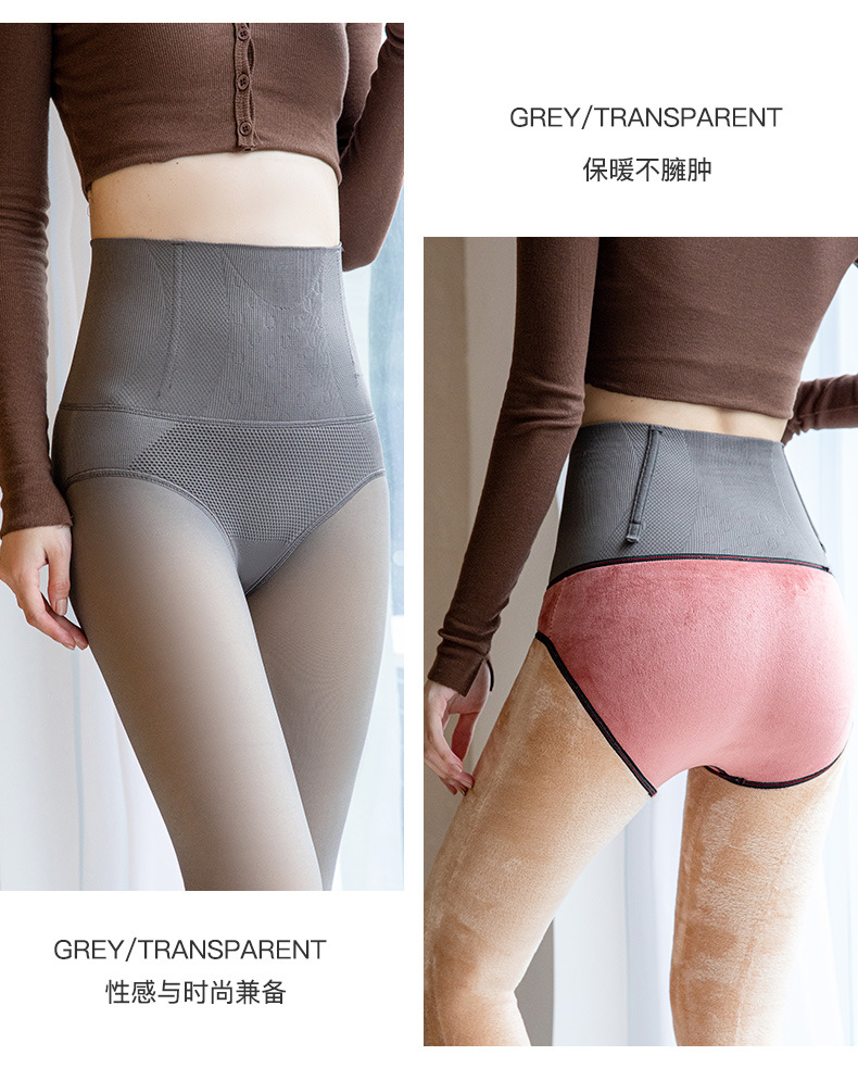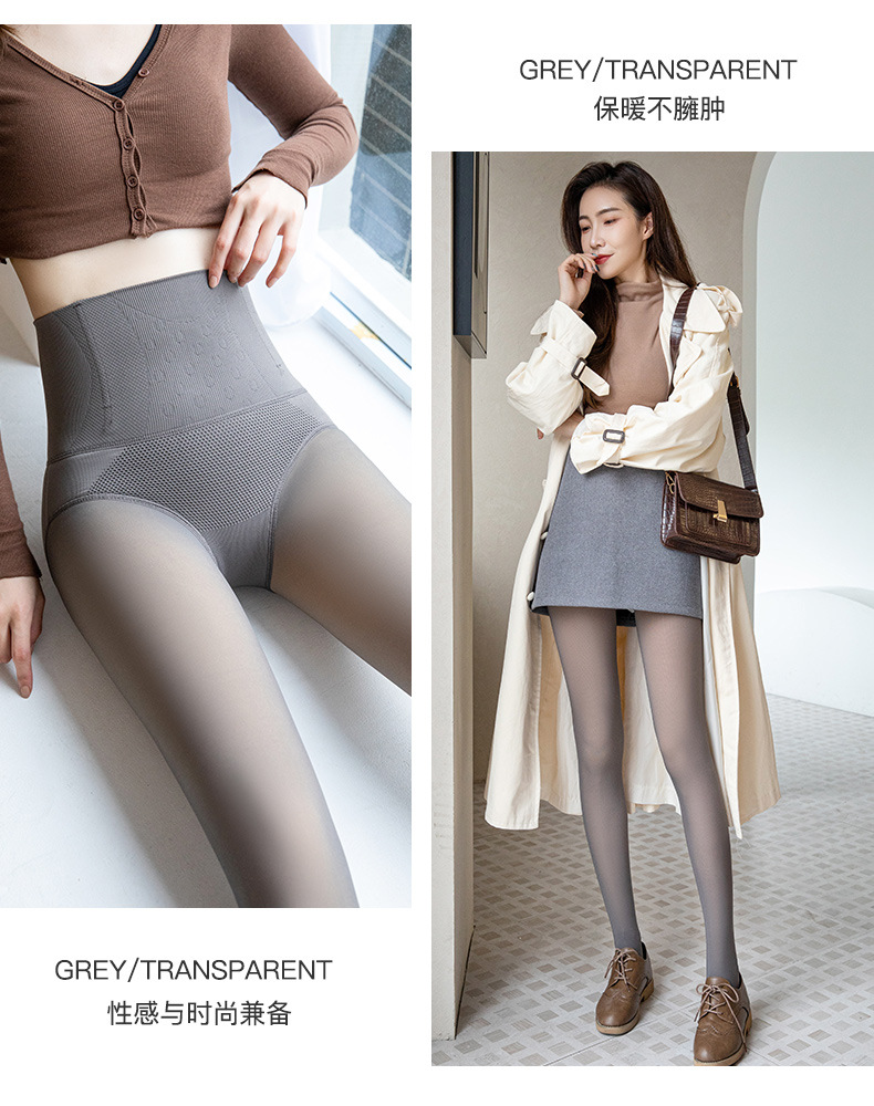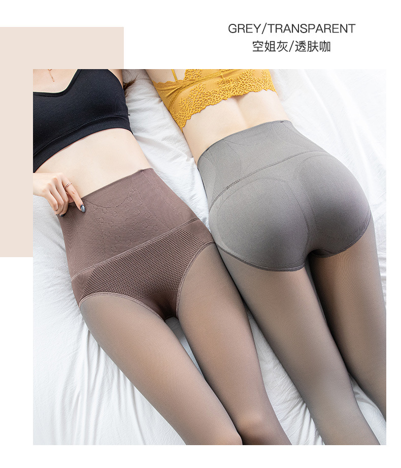 높은 허리 배 수축 레깅스 여성의 가을과 겨울 기모 가벼운 다리 유물 가짜 투명 고기 스튜어디스 회색 투명 한 원피스 팬티 스타킹