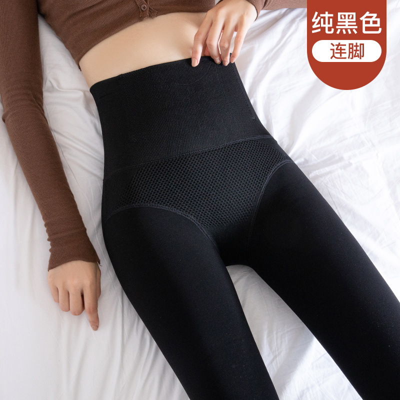 높은 허리 배 수축 레깅스 여성의 가을과 겨울 기모 가벼운 다리 유물 가짜 투명 고기 스튜어디스 회색 투명 한 원피스 팬티 스타킹스토어 가기