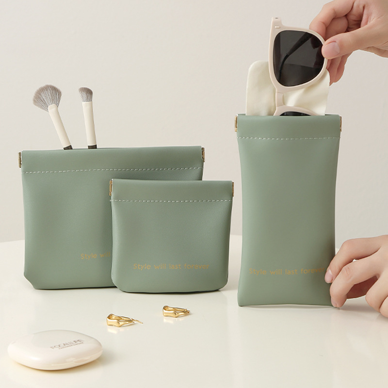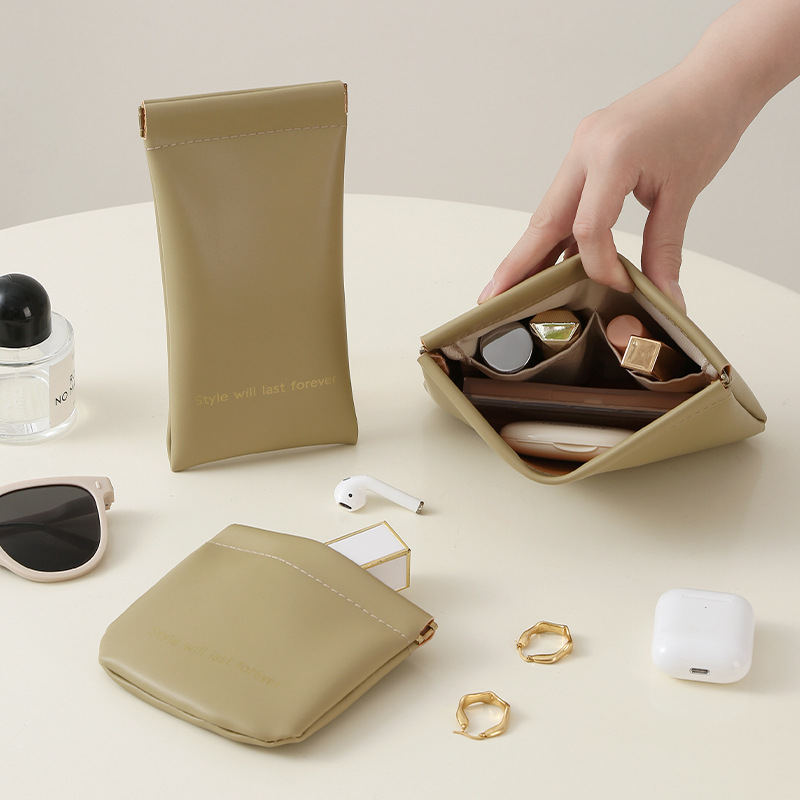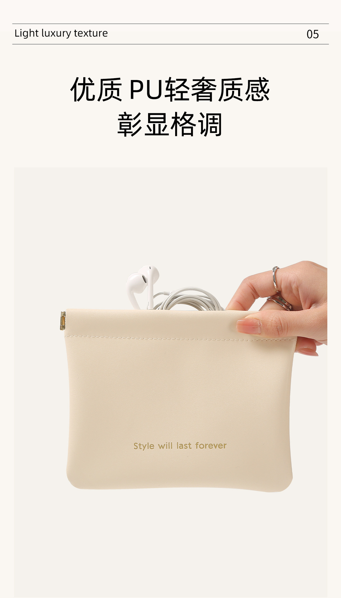 Anqin 휴대용 데이터 케이블 보관 가방 여행 휴대용 PU 립스틱 화장품 가방 다목적 자동 폐쇄 보관 가방