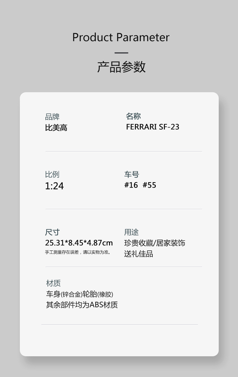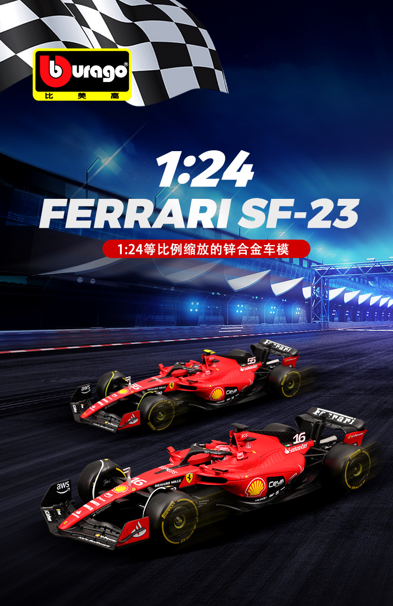 Burago는 실제 포뮬러 1 자동차 모델 장난감을 모방한 1:24 페라리 F1SF-23 합금 자동차입니다.스토어 가기