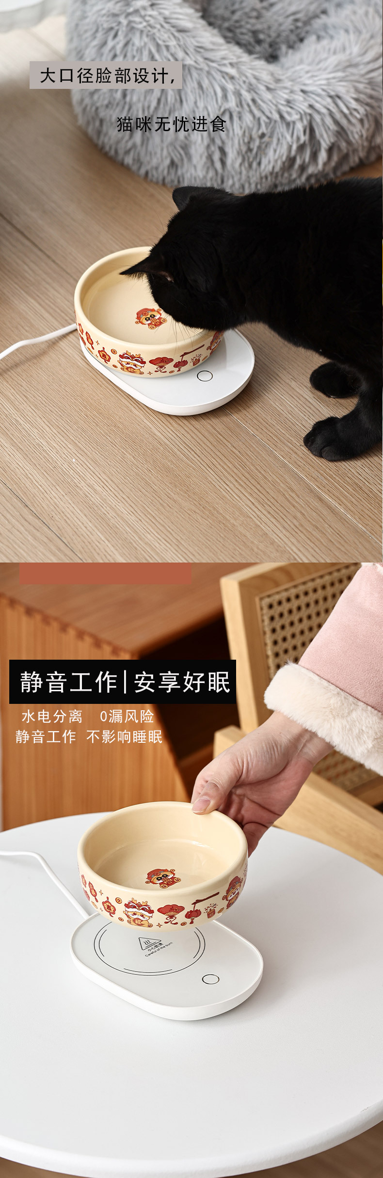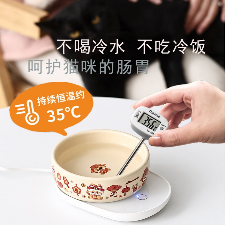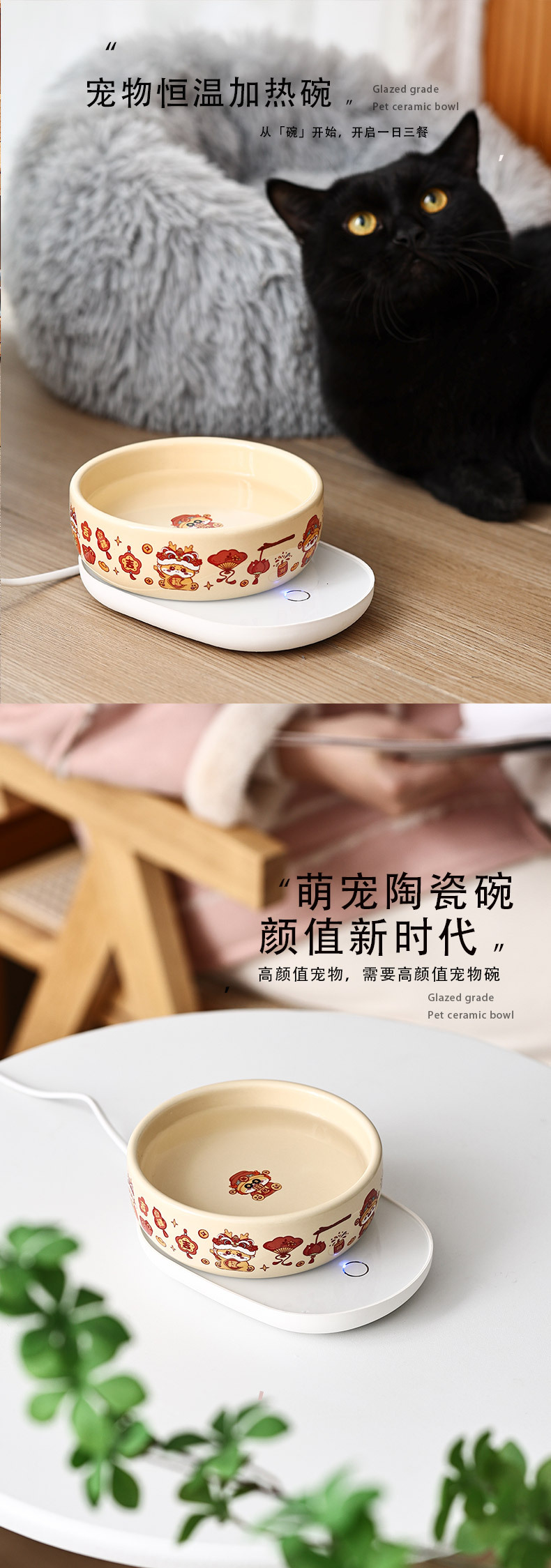 고양이 일정한 온도 난방 물 디스펜서 귀여운 만화 용 년 새로운 풍부한 고양이 물 그릇 세라믹 그릇 고양이 밥 그릇