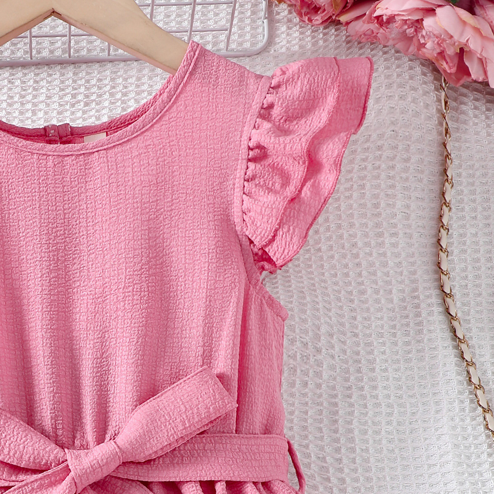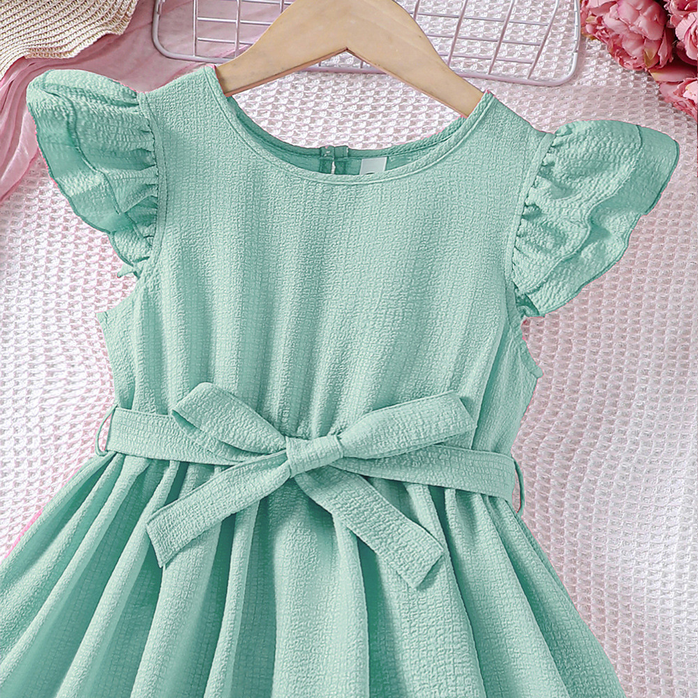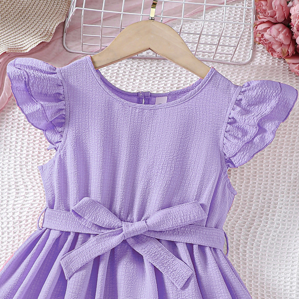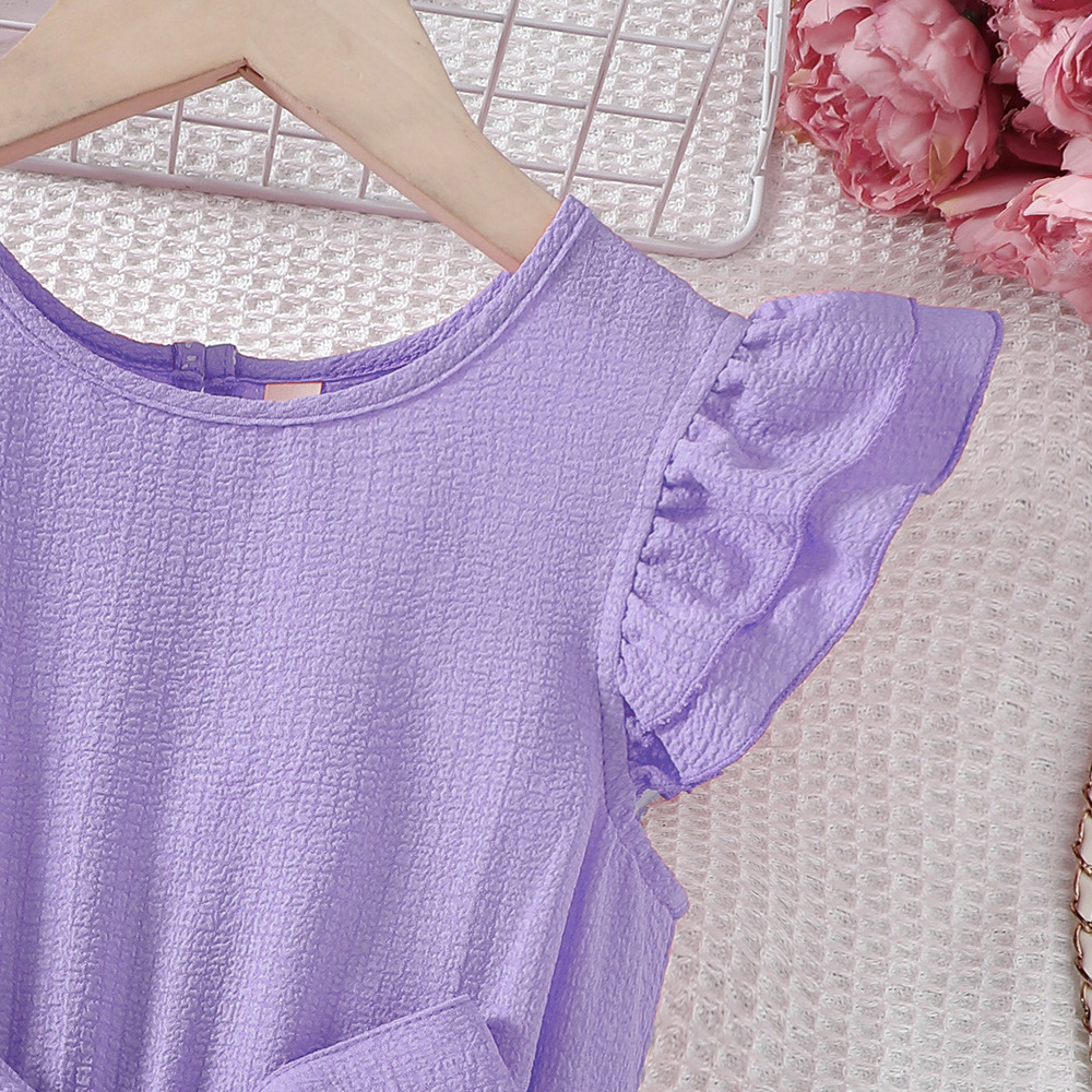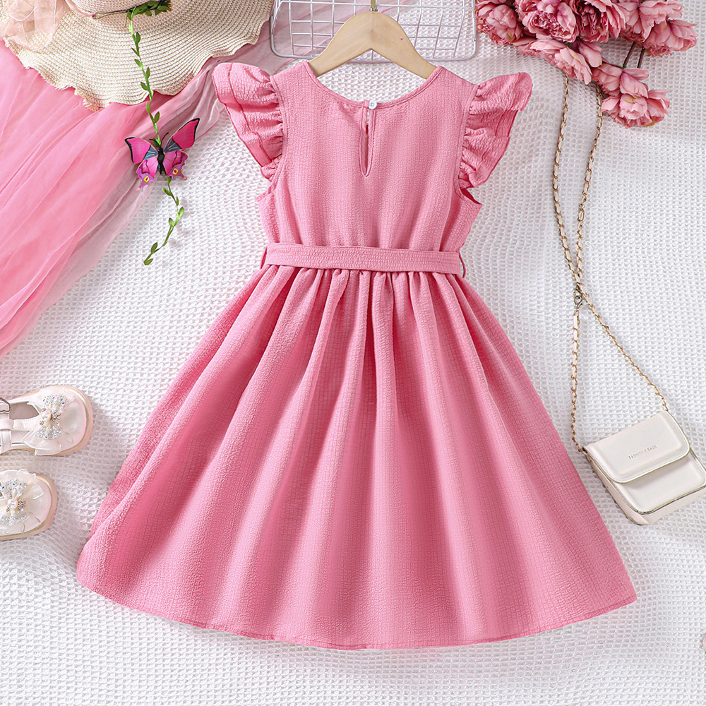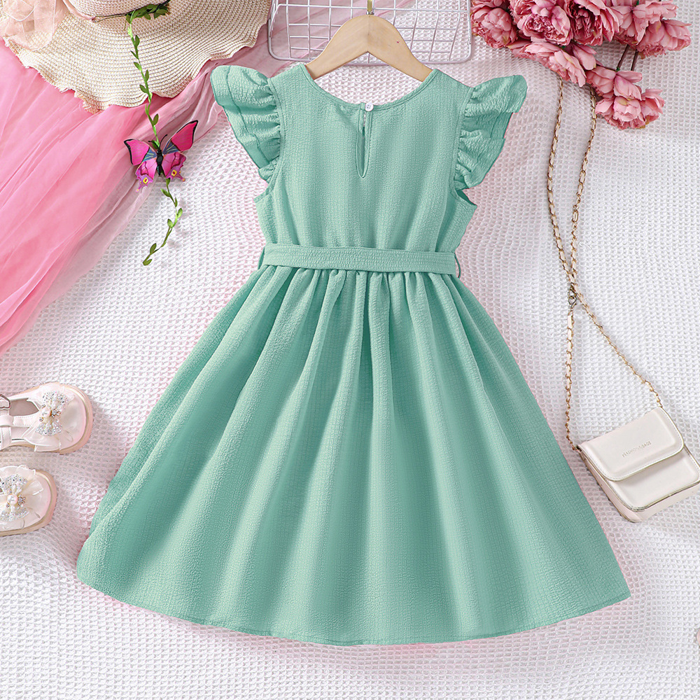 EW 대외 무역 아동복 중대형 어린이 소녀 여름 뉴 홀리데이 더블 레이어 프릴 소매 단색 원피스 DQ1699-C