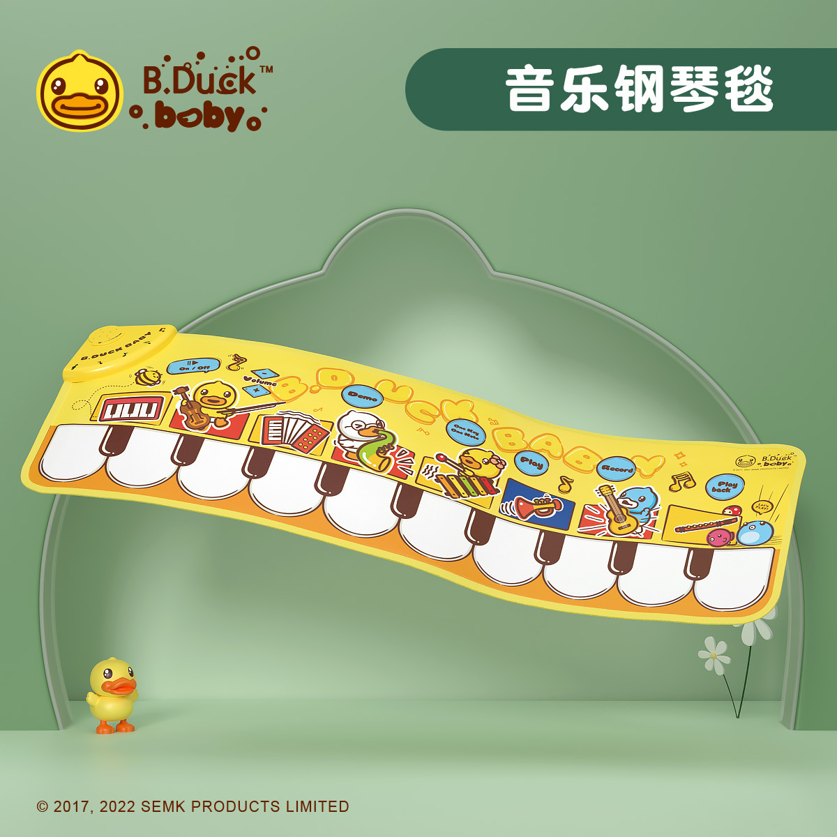 B.Duck 작은 노란색 오리 어린이 음악 댄스 매트 유아 크롤링 피트니스 아기 게임 매트 아기 전자 오르간 매트스토어 가기