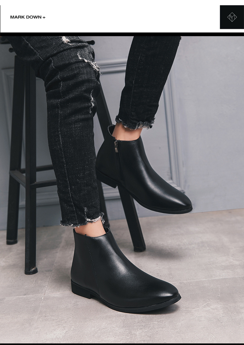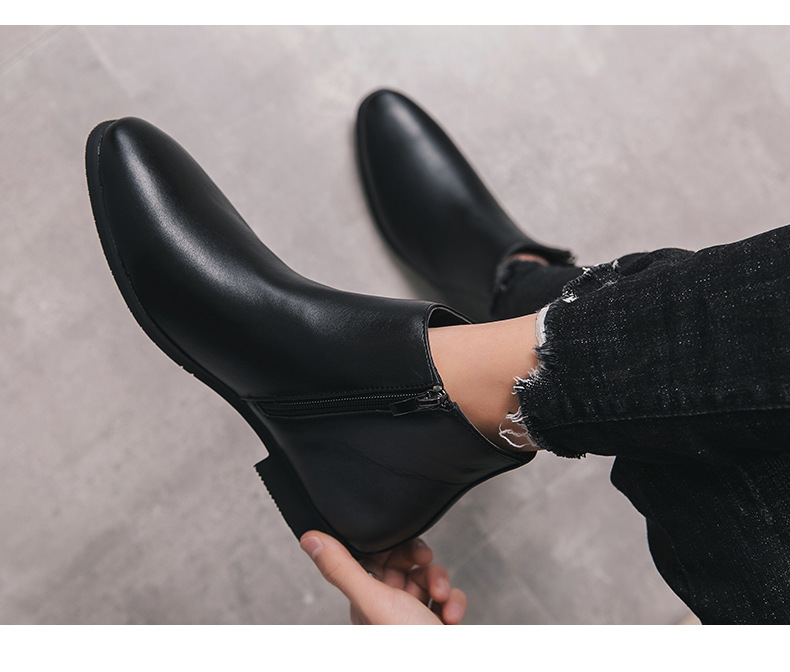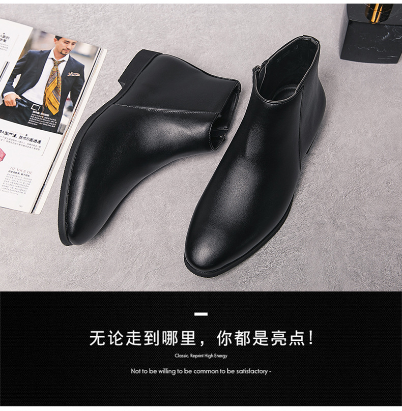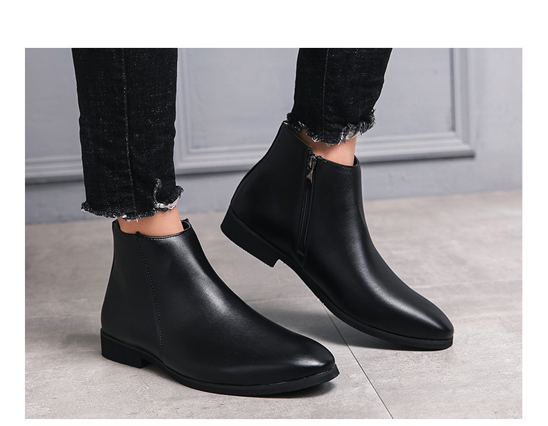 대외 무역 2023 플러스 사이즈 사이드 지퍼 하이 탑 가죽 신발 남성 지적 영국 캐주얼 짧은 부츠 마틴 부츠 첼시 가죽 부츠스토어 가기