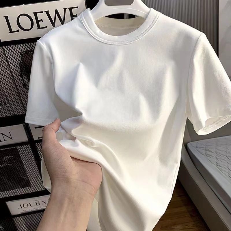 브랜드 남성 반팔 티셔츠 2024 여름 새로운 순수 컬러 남성 슬림 핏 슬리밍 탑 남성 공급스토어 가기