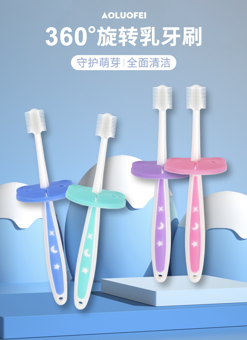 360 아기 치아 청소 어린이 칫솔 식품 등급 실리콘 치아 보호 가정용 아기 1-12 세 아기 칫솔 부드러운 머리카락