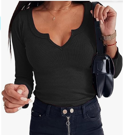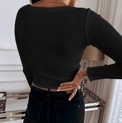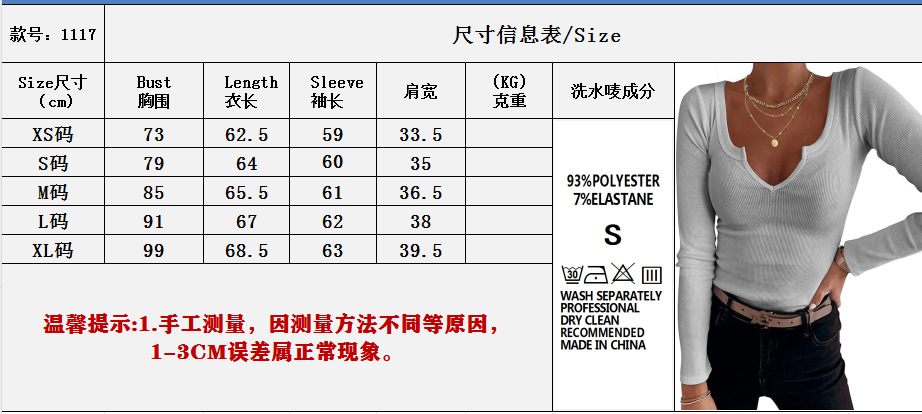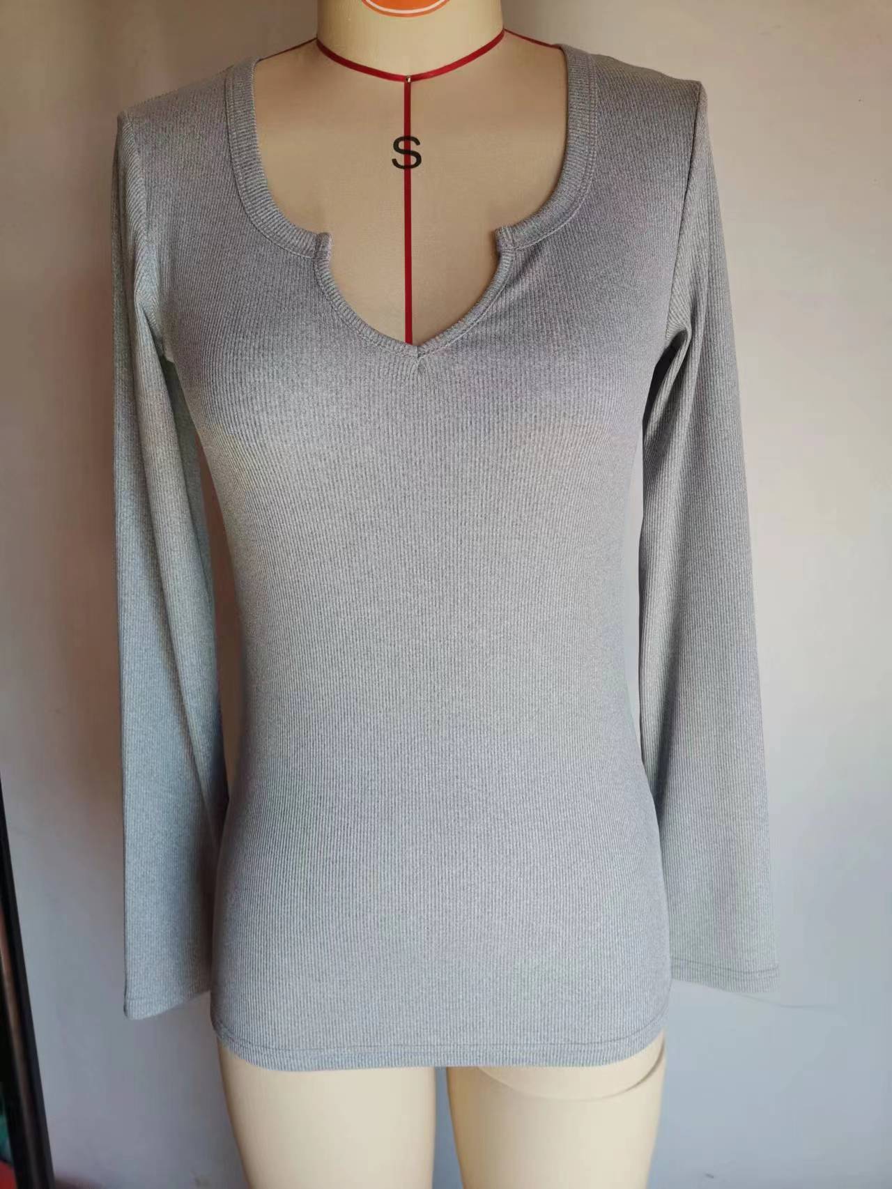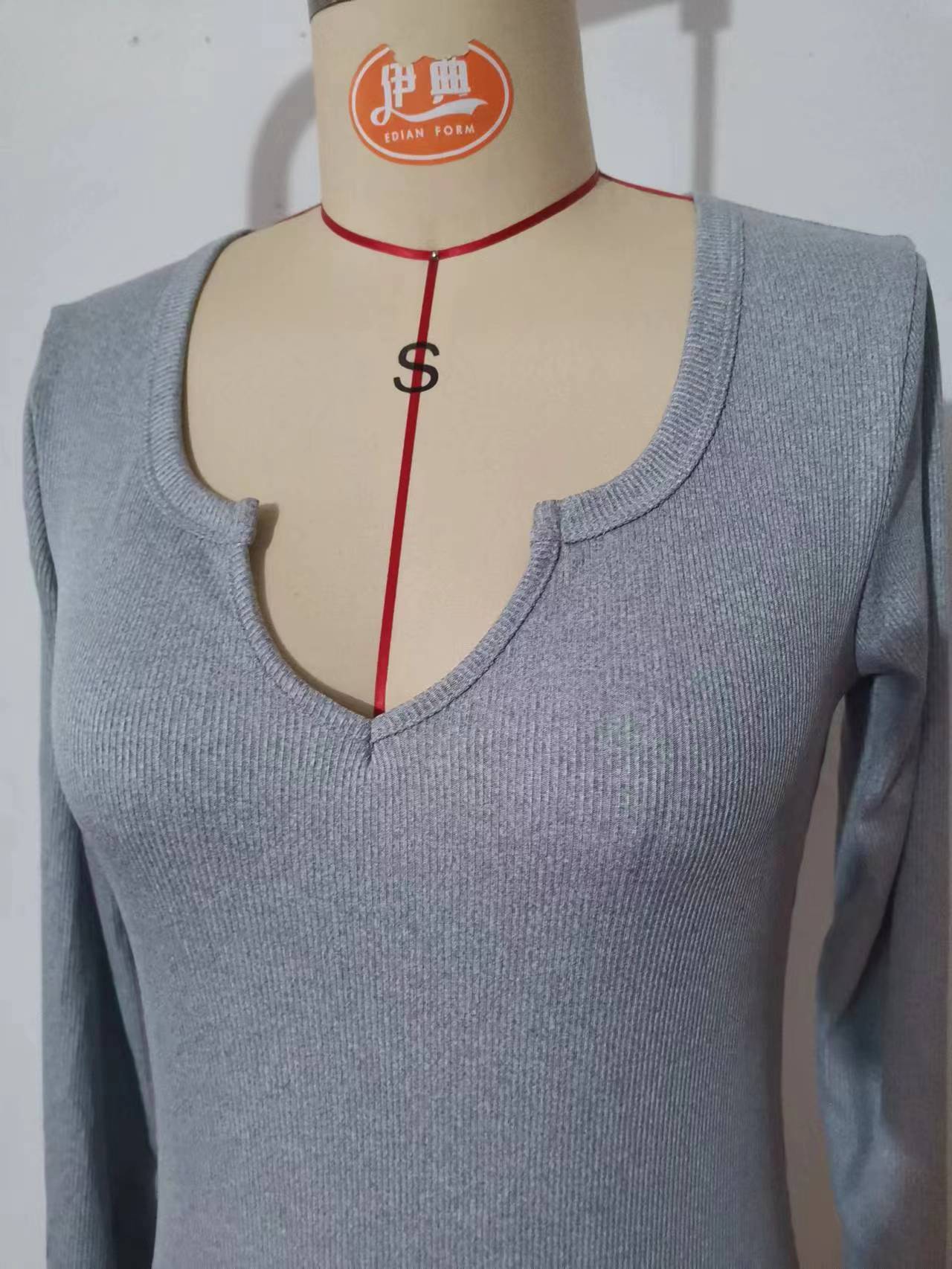 유럽과 미국 스타일의 크로스보더 봄/겨울 무지 골지 딥 U넥 롱 슬리브 캐주얼 패션 여성 티셔츠 탑, 핫한 유럽과 미국 스타일스토어 가기