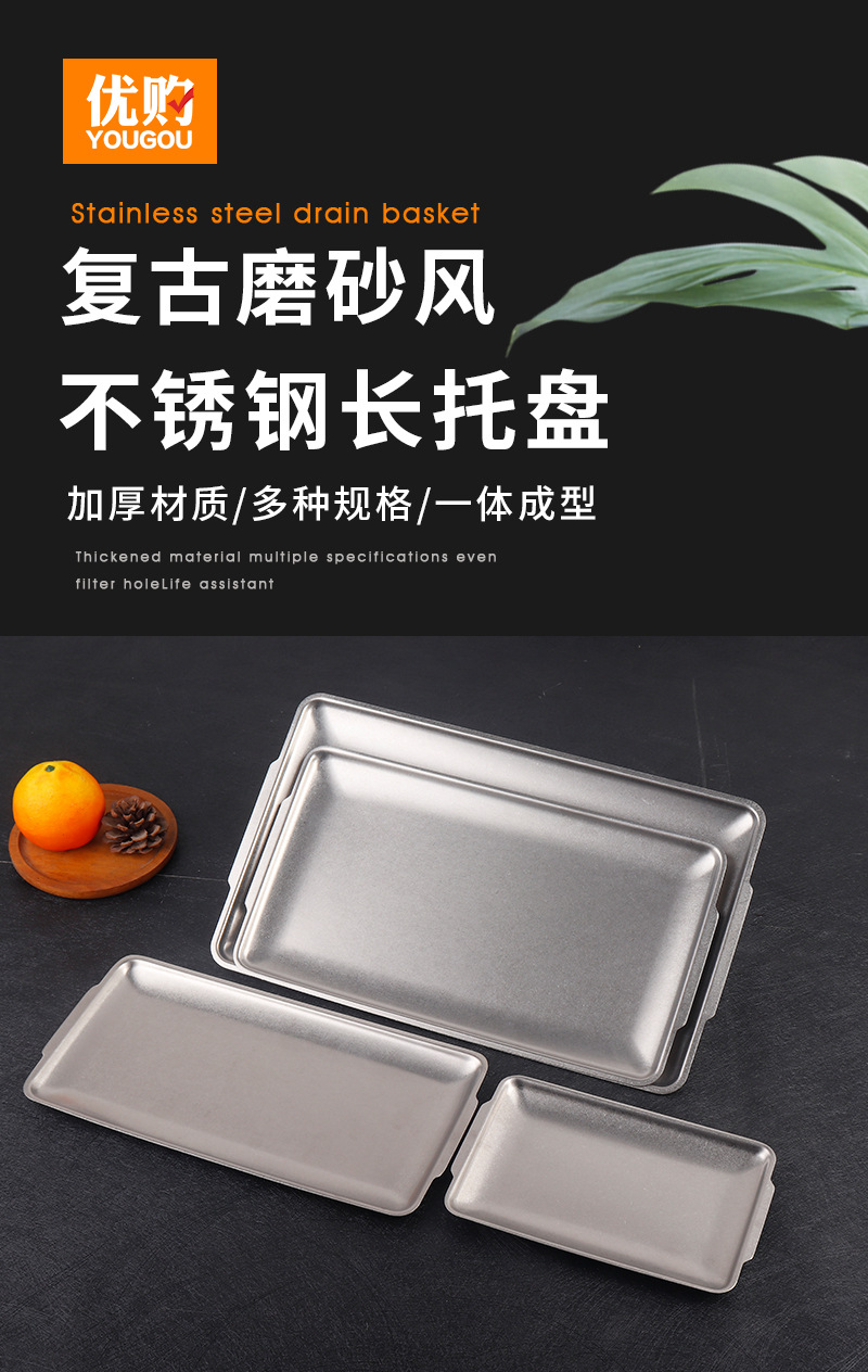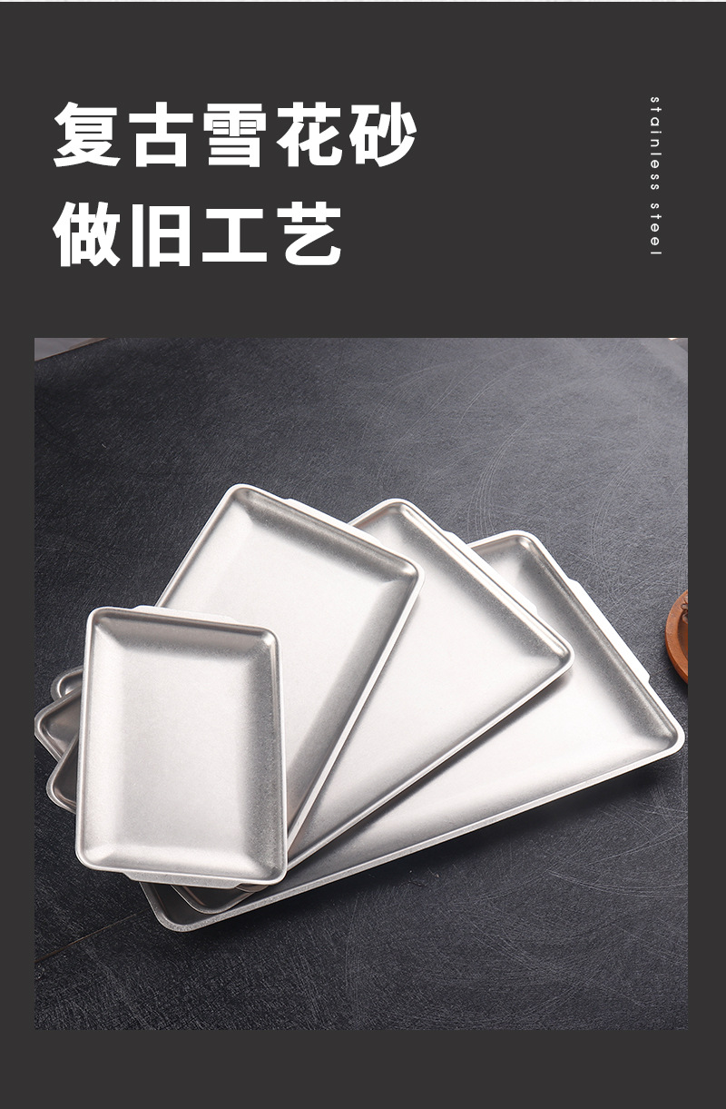 빈티지 식기 스테인레스 스틸 트레이 직사각형 조난 얕은 플레이트 산업 스타일 저장 플레이트 바베큐 플레이트 과일 디저트 플레이트스토어 가기