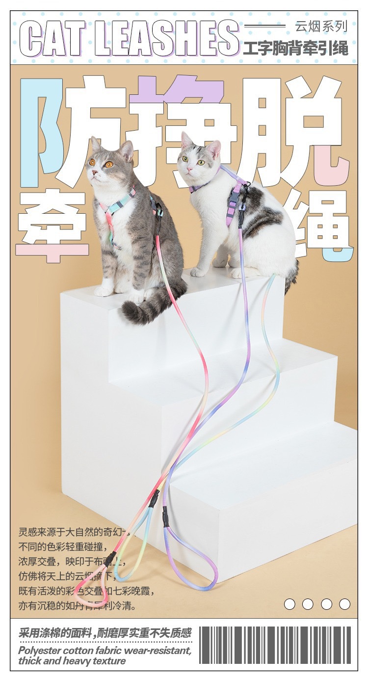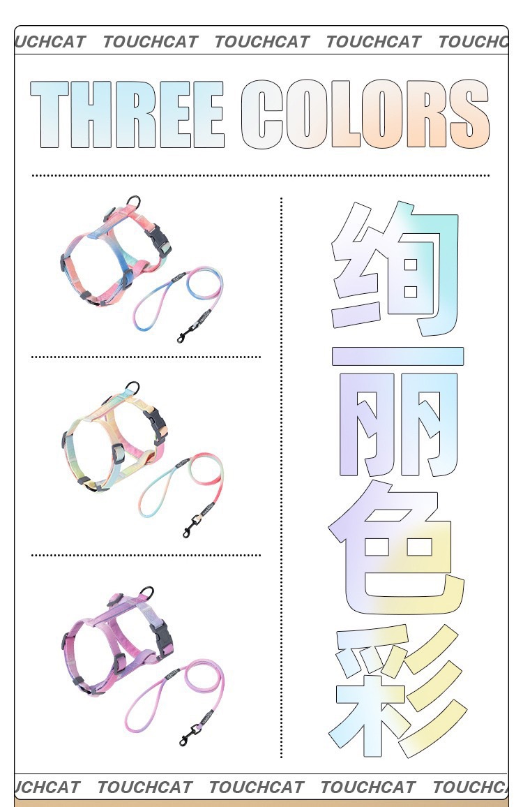 터치캣 고양이 목줄, 고양이 산책줄, 조끼형 탈출방지 새끼 고양이 목줄, 화려한 색상