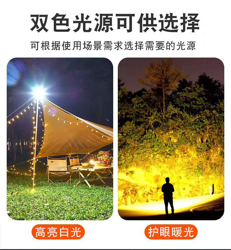 JR 야외 캠핑 조명 슈퍼 긴 내구성 슈퍼 밝은 따뜻한 노란색 캠핑 텐트 조명 스톨 야시장 조명 캠핑 조명
