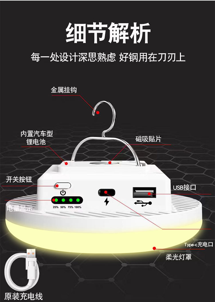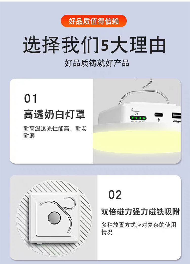 JR 야외 캠핑 조명 슈퍼 긴 내구성 슈퍼 밝은 따뜻한 노란색 캠핑 텐트 조명 스톨 야시장 조명 캠핑 조명스토어 가기