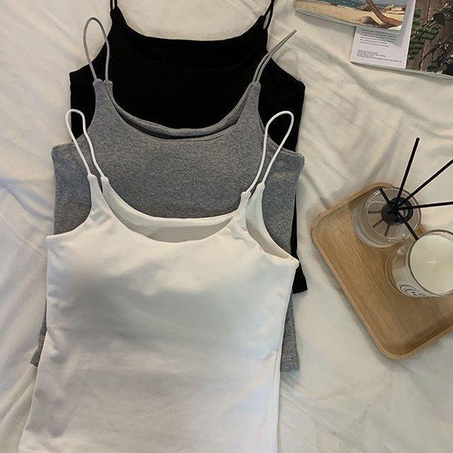 스포츠 카미 솔 여성용 고정 가슴 패드 원피스 슬림 핏 아름다운 뒷면 내부 입고 보틀 민소매 탑