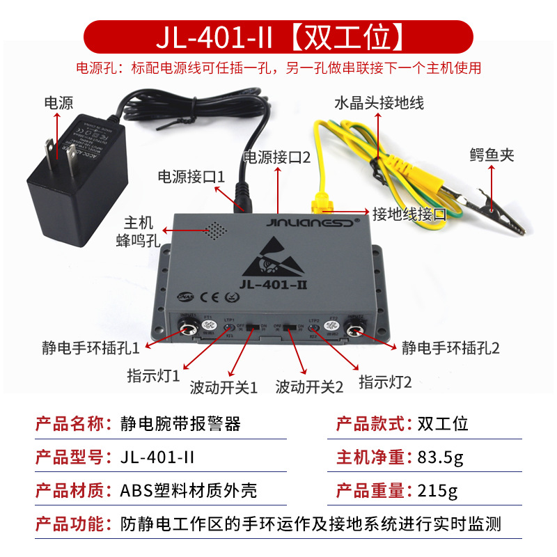 정적 링 경보 JL401-II 더블 스테이션 정전기 방지 로프 손목 스트랩 테스터 온라인 접지 테스트스토어 가기