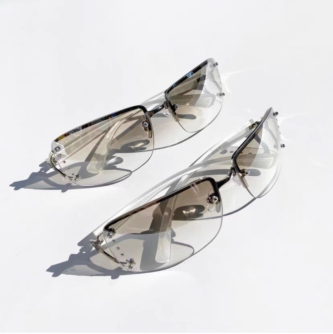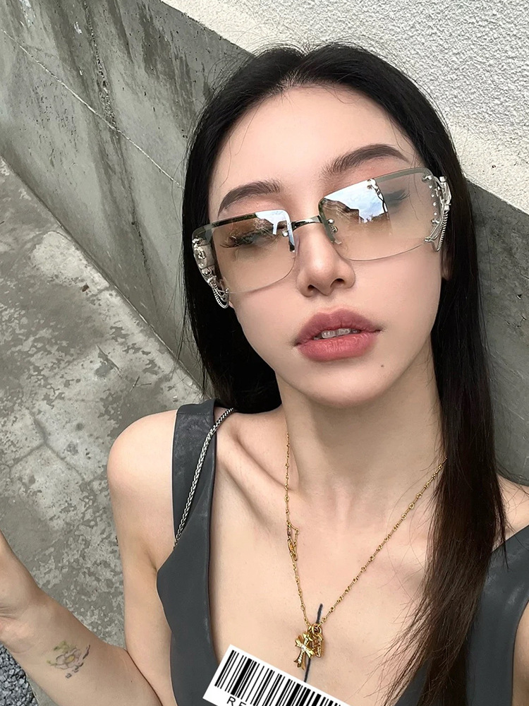 Y2g 뜨거운 소녀 달콤한 멋진 선글라스 세련된 맞춤형 다이아몬드 내장 세련된 복고풍 프레임리스 스퀘어 안경 남성용 그물 레드 선글라스스토어 가기