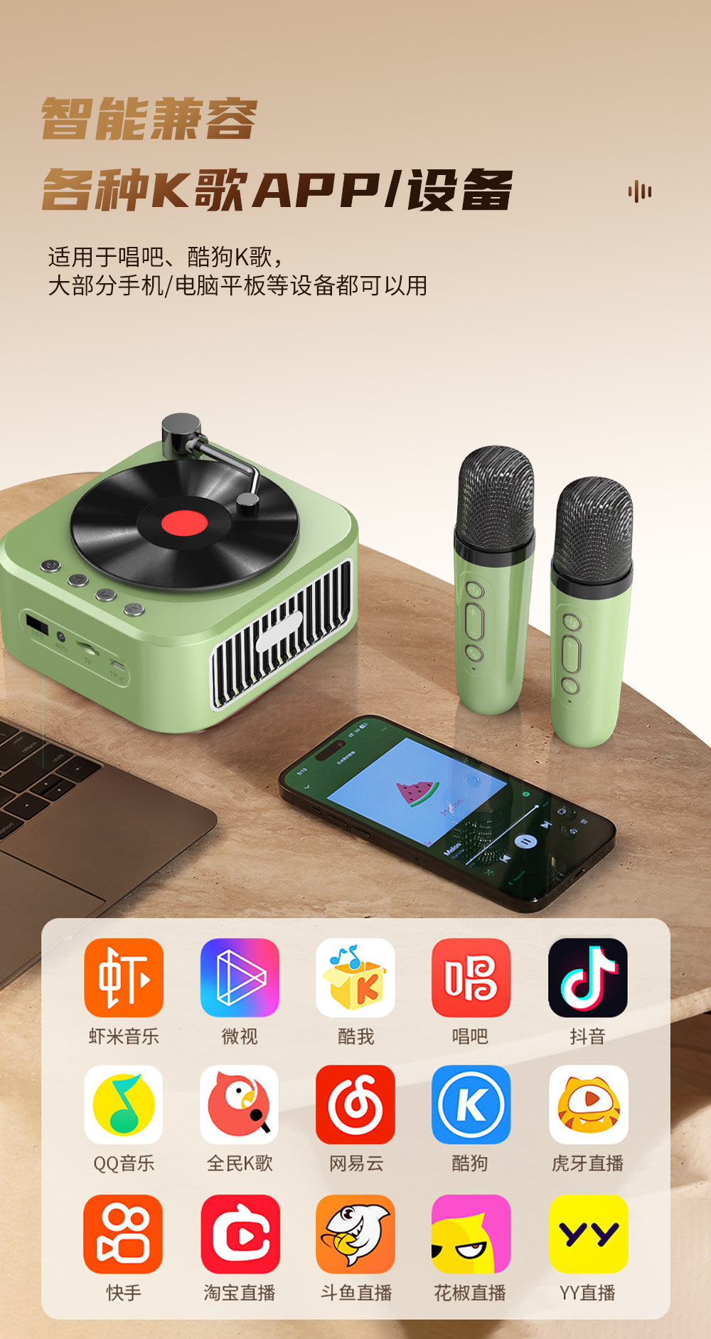 • 미니 레코드 오디오-고급 노래방 보물-녹색