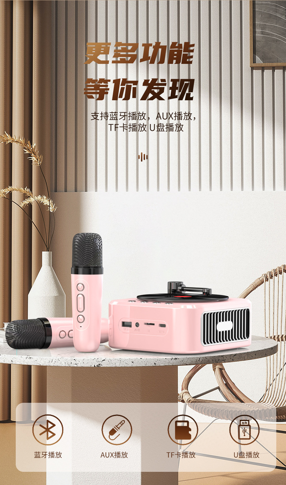• 미니 레코드 오디오-럭셔리 노래방 보물-핑크