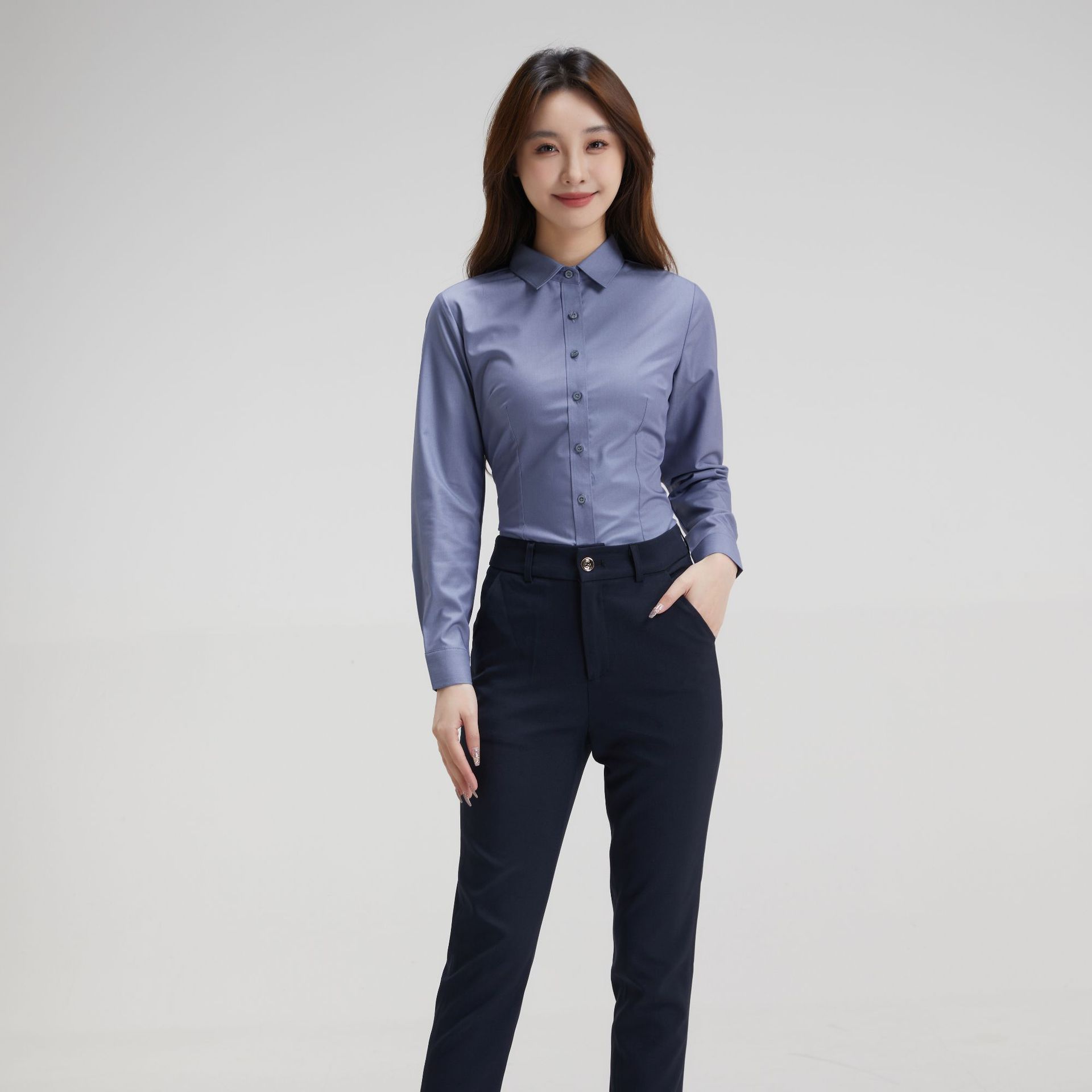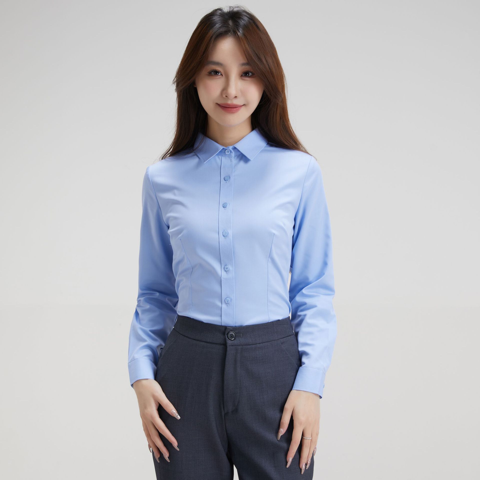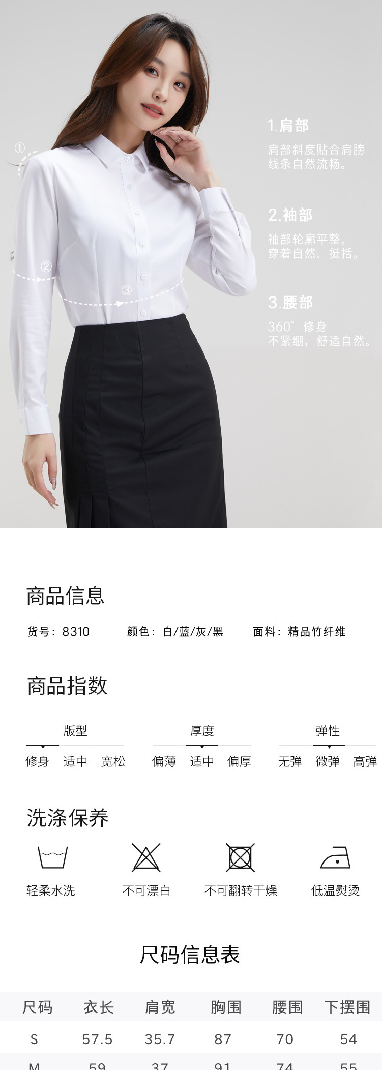 여름 새 여성 긴팔 여성 셔츠 여성 기질 통근 슬림 패션 대나무 섬유 흰색 셔츠 여성 하이 센스스토어 가기