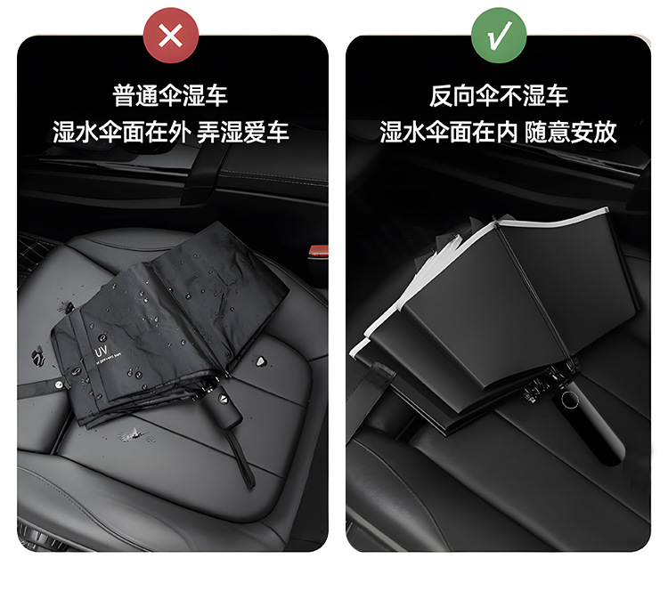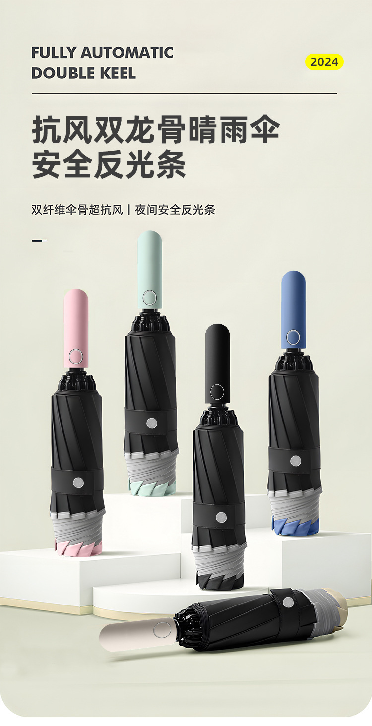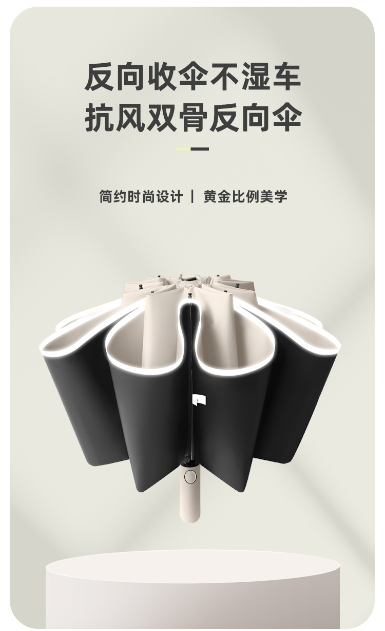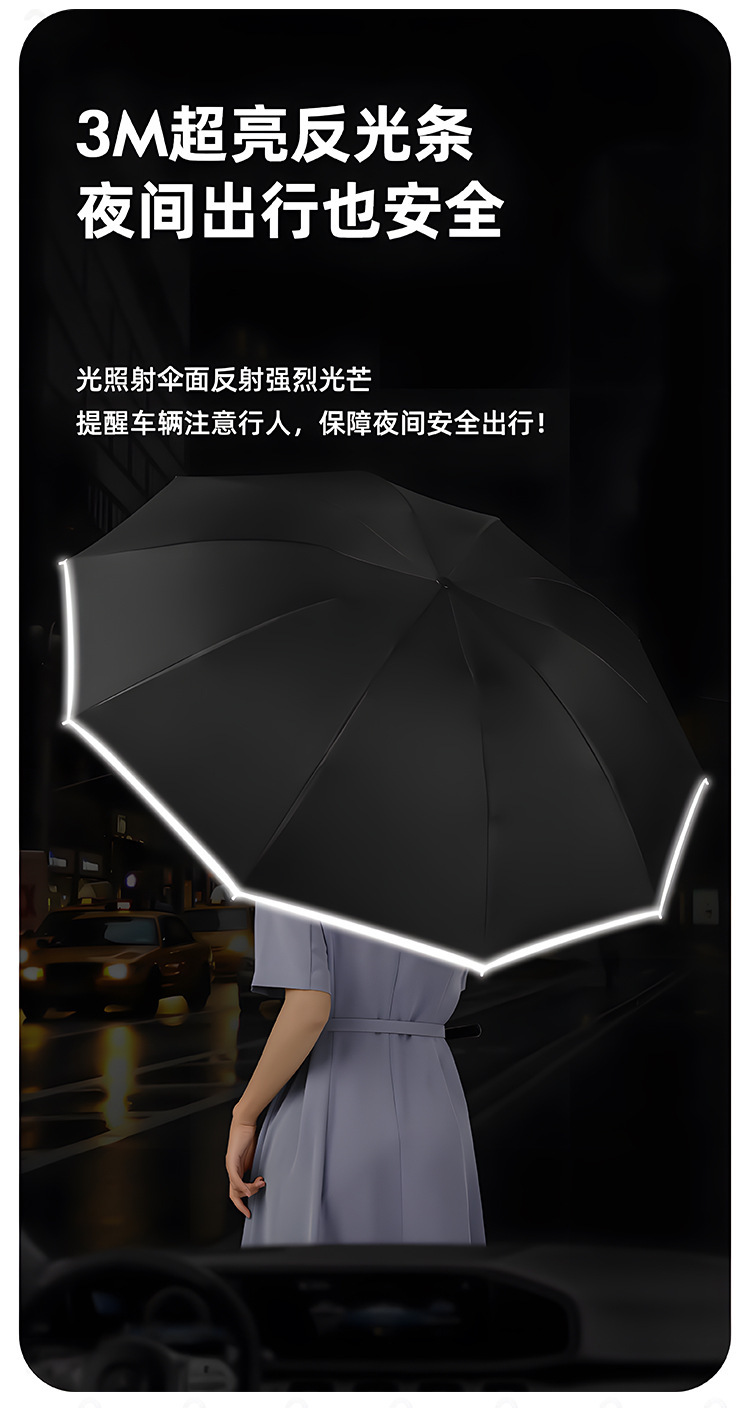 우산 접히는 우산 역 더블 뼈 반사 스트립 써니 우산 강화 안티 스톰 두껍게 검은 우산 자동 대형스토어 가기