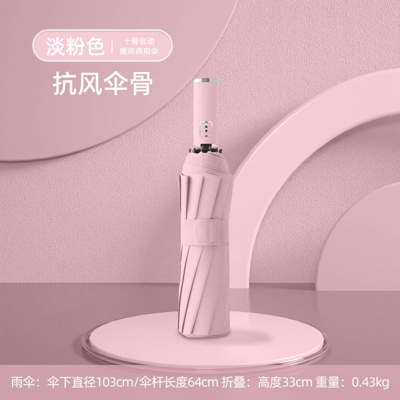 • 기본형 자동 블랙 코팅 우산 [10단 우산살, 양우산 겸용] 연한 핑크색