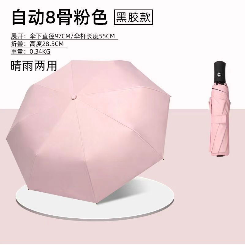 • 기본 자동 검은 고무 우산 [8 뼈 비 이중 사용] 빛 핑크