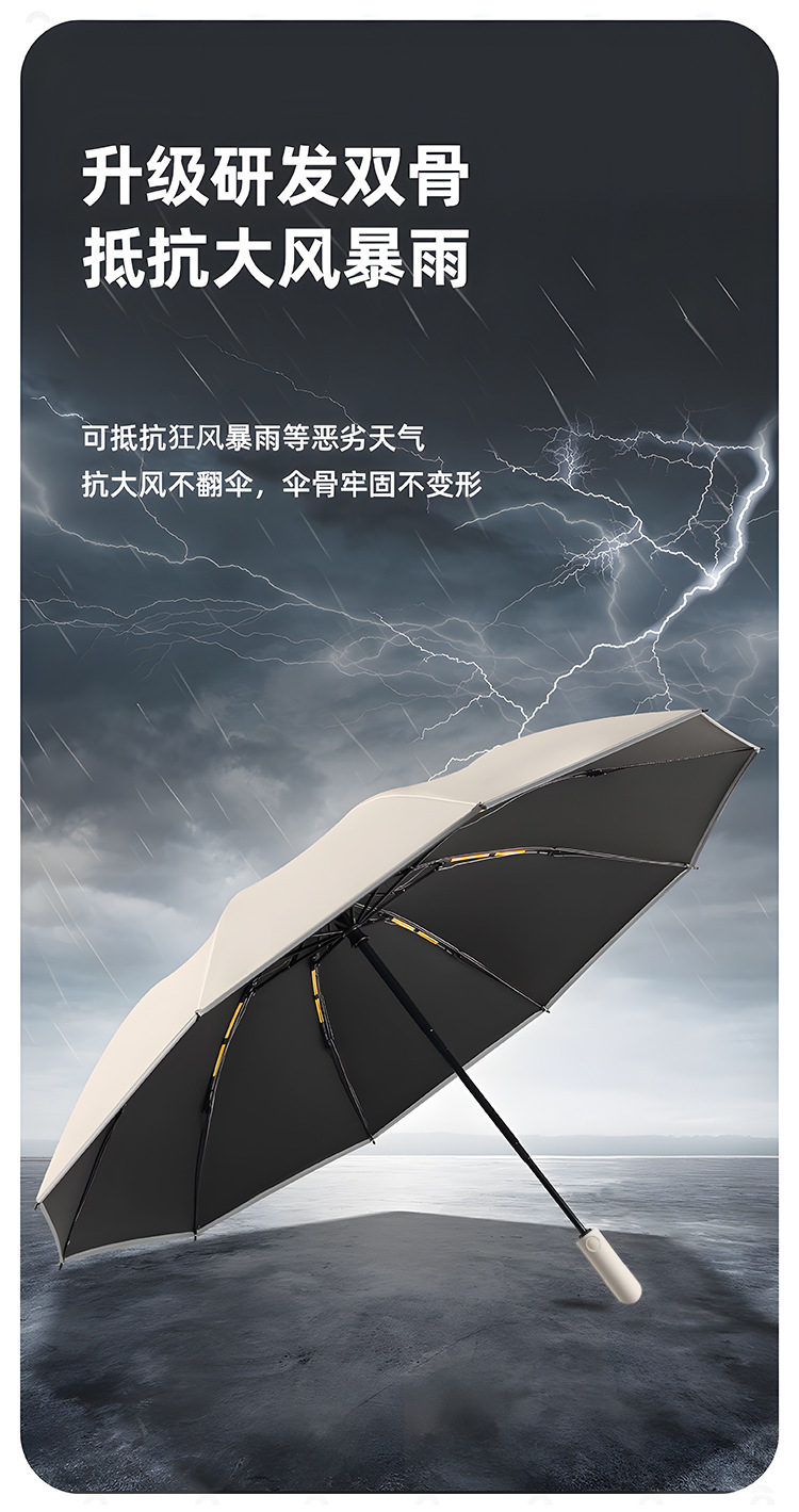우산 접히는 우산 역 더블 뼈 반사 스트립 써니 우산 강화 안티 스톰 두껍게 검은 우산 자동 대형